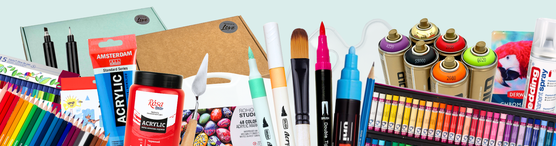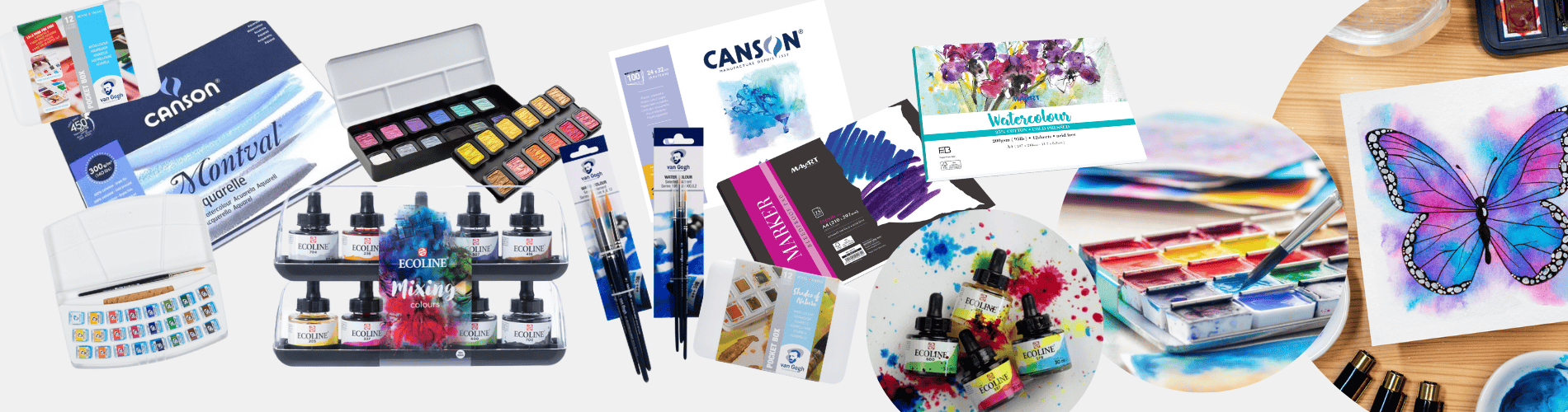 Kunstartikler: maling, pensler, lærreder, tegneredskaber og meget mere