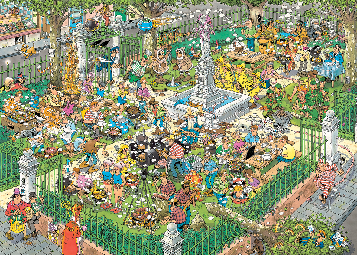 Puslespil fra Jumbo af Jan Van Haasteren, bestående af 1.000 brikker og med et detaljeret og sjovt motiv, rigtig god og hyggelig beskæftigelse, med hele familien, dog ikke egnet til børn under 12 år.