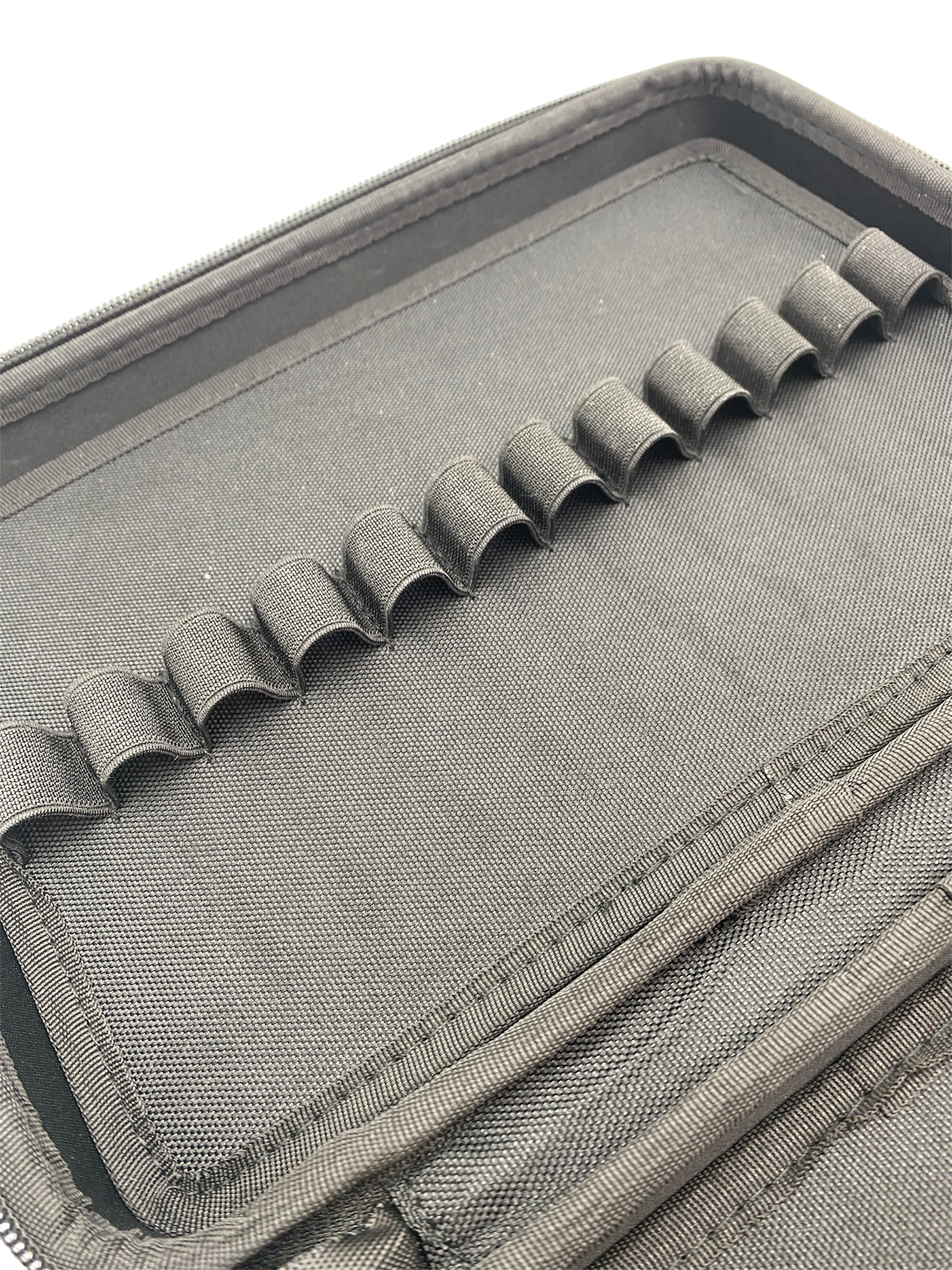 Elastikbåndene varierer i størrelse for at passe perfekt til de forskellige typer Posca-tuscher, hvilket gør det nemt at organisere og adskille tuscherne efter behov. Der er plads til en række forskellige formater, herunder 3 x 8K (1,8 cm), 12 x 5M (1 cm), 6 x 3M (0,8 cm) og 3 x 1M (0,8 cm). Denne alsidige kuffert sikrer, at du altid har det nødvendige værktøj lige ved hånden, uanset hvilken kreativ opgave du står overfor.