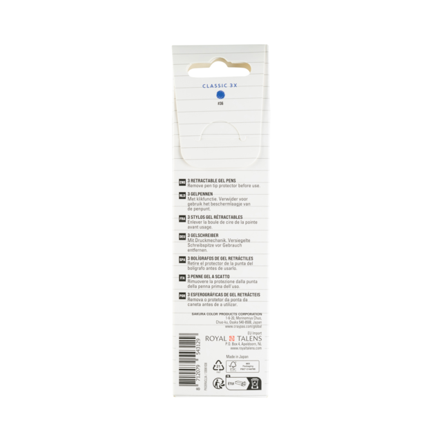 Produktet leveres som en pakke med tre blå gelpenne og er velegnet til både skrivning, tegning, skitsering og andet detaljeret arbejde, hvor der ønskes en klar og præcis streg.