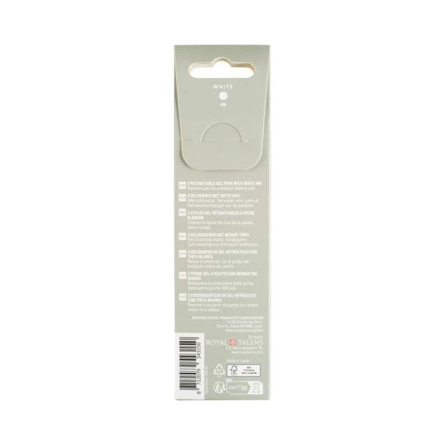 Produktet leveres som en pakke med tre hvide gelpenne og er velegnet til både skrivning, tegning, skitsering og andet detaljeret arbejde, hvor der ønskes en klar og præcis streg.