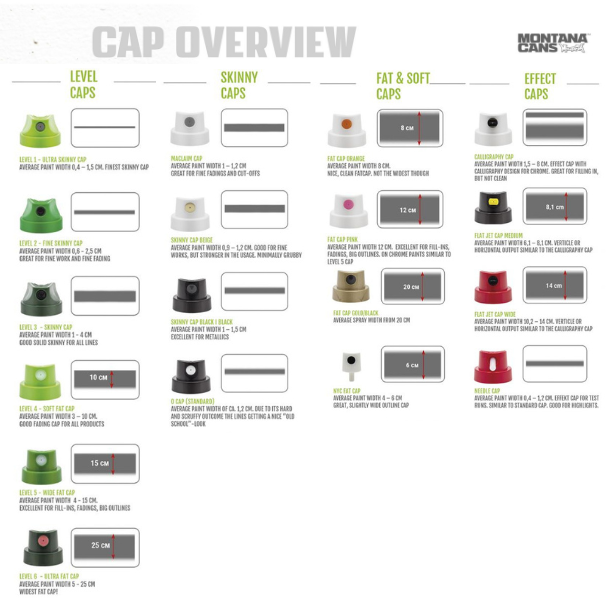 Montana Cans udviklede fedthætten GOLD/BLACK som den bredeste sprøjtehætte til specifik graffitibrug. På det tidspunkt troede vi, at vi havde opfundet hjulet.