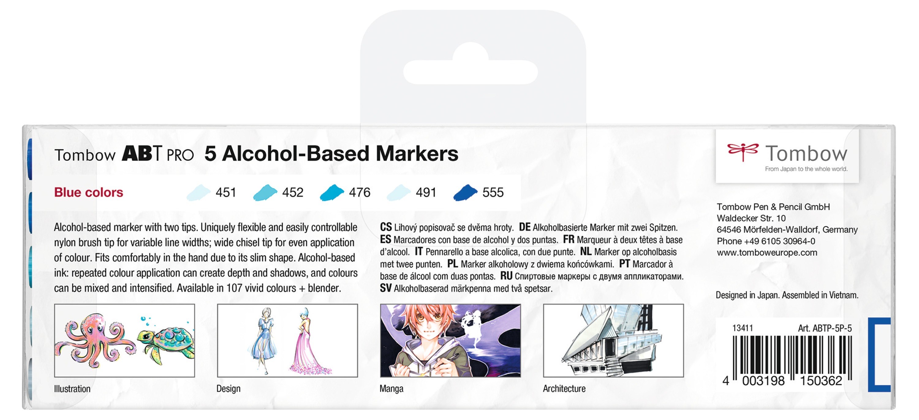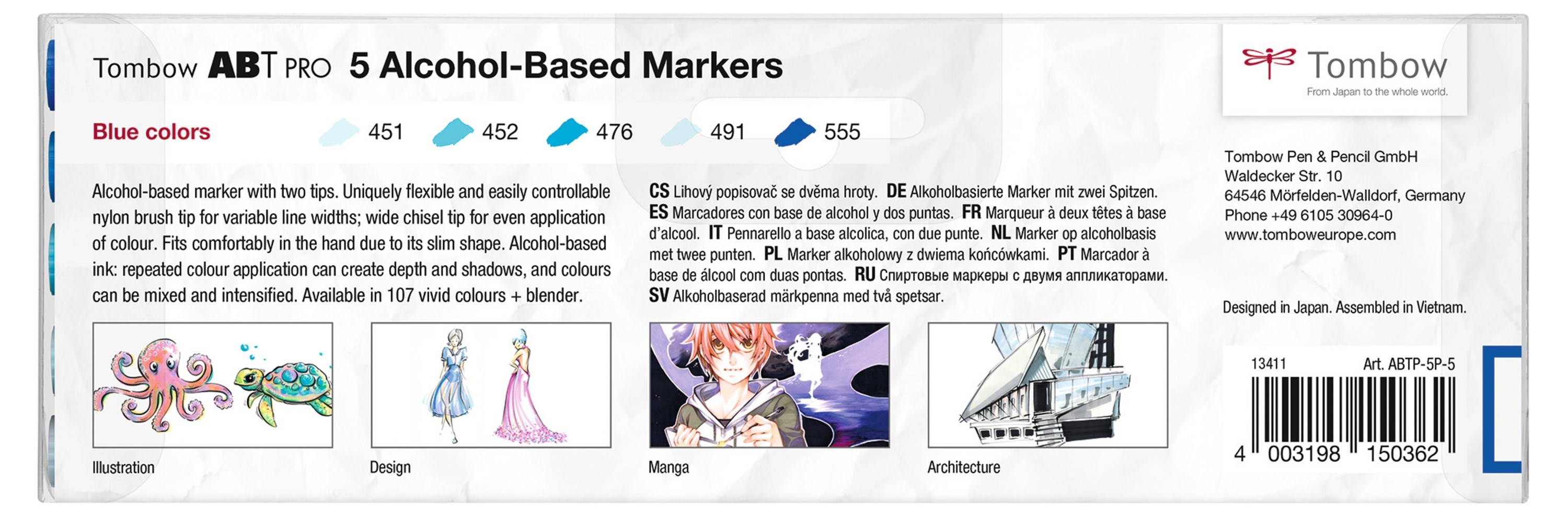 Den permanente blæk giver klare farver og stribefri dækning. Ved at tilføje ekstra farvelag, kan man øge dybder og skygger - og farverne kan blandes og intensiveres. ABT PRO kan bruges overalt, hvor der er behov for farveintensive og dynamiske illustrationer – f.eks. til manga og tegneserier, skitser, modedesign, produktudvikling, arkitektur og på mange andre områder.
