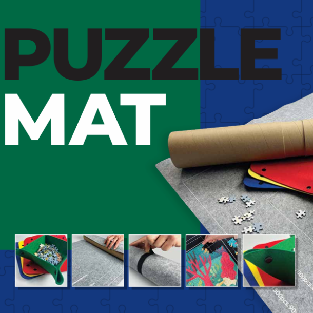 Puslespilsmåtte: En stor og fleksibel puslespilsmåtte, der er designet til at passe perfekt til puslespil med 500 til 1500 brikker. Måtten er fremstillet i holdbart filtmateriale, som skaber et stabilt underlag og holder brikkerne sikkert på plads, mens du arbejder på dit puslespil. Den gør det nemt at flytte eller opbevare et igangværende projekt uden at miste dine fremskridt.
