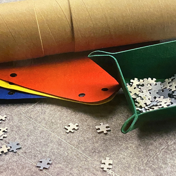 Oprulningsrør: Medfølgende er tre robuste oprulningsrør lavet af pap, som giver dig mulighed for at rulle dit puslespil sikkert sammen, når du ønsker at tage en pause.