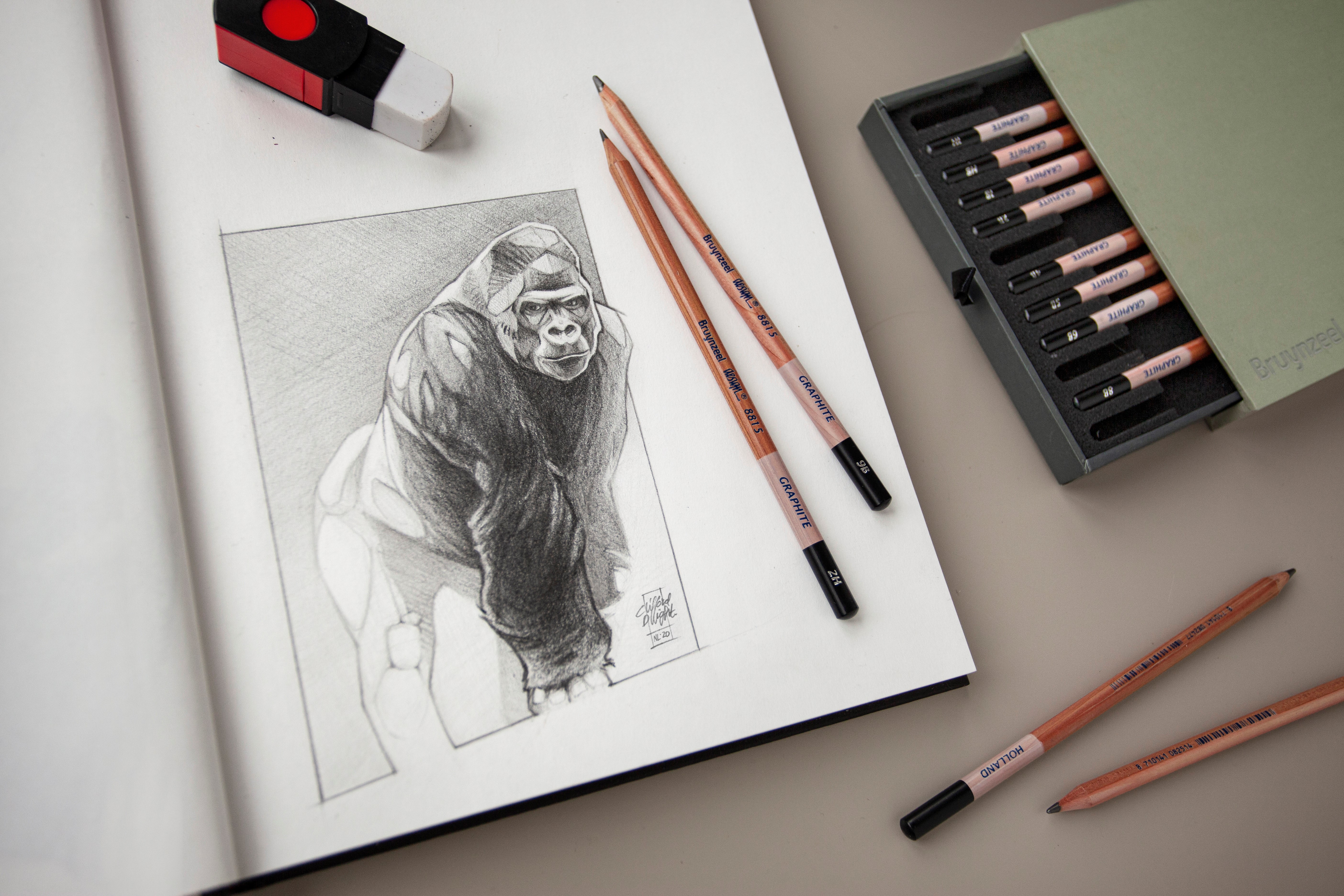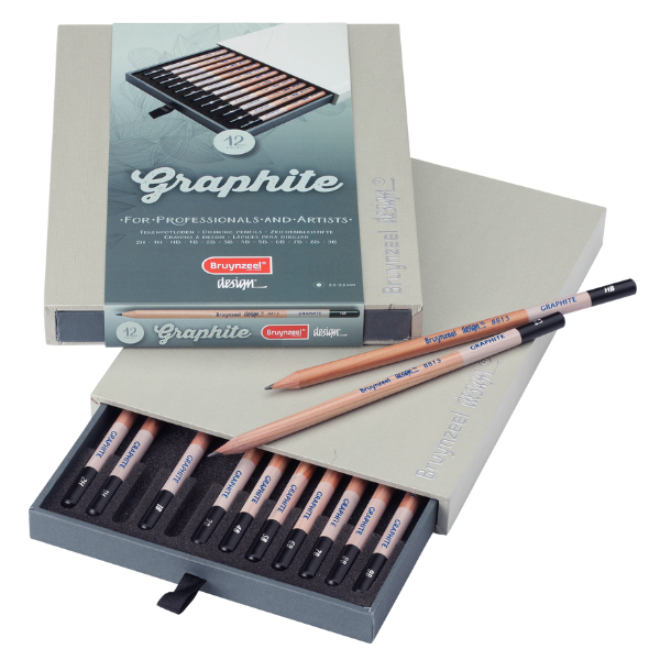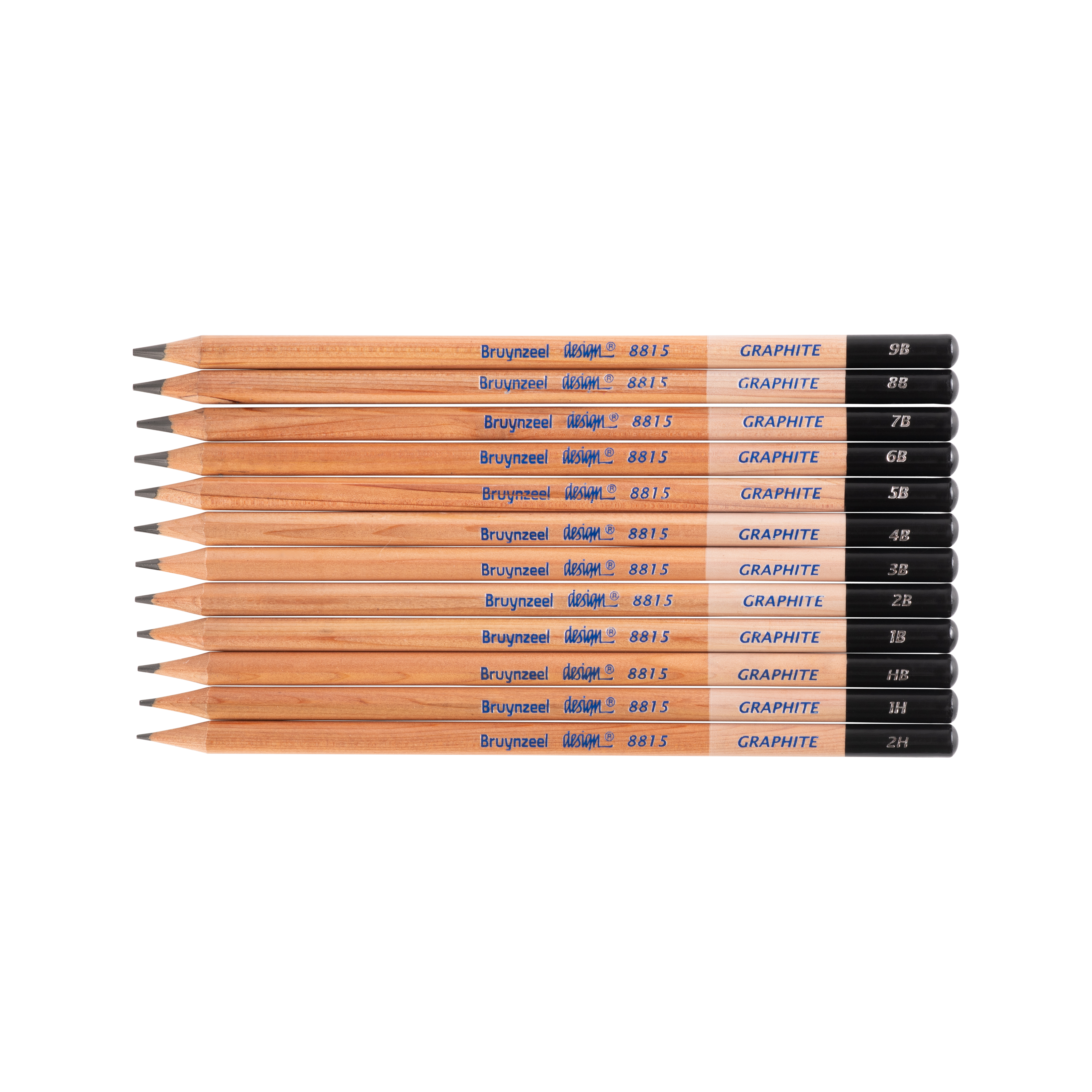 Et komplet sæt med 12 blyanter i forskellige hårdhedsgrader fra 2H til 9B – perfekt til både detaljerede tegninger og dybe skygger.
