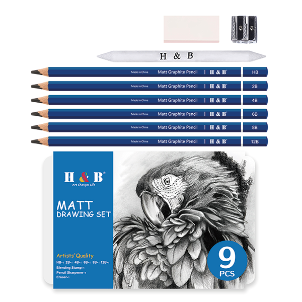 Dette Matt Drawing Set fra H&B er et komplet sæt med 9 dele, der er ideelt til både begyndere og øvede tegnere.
