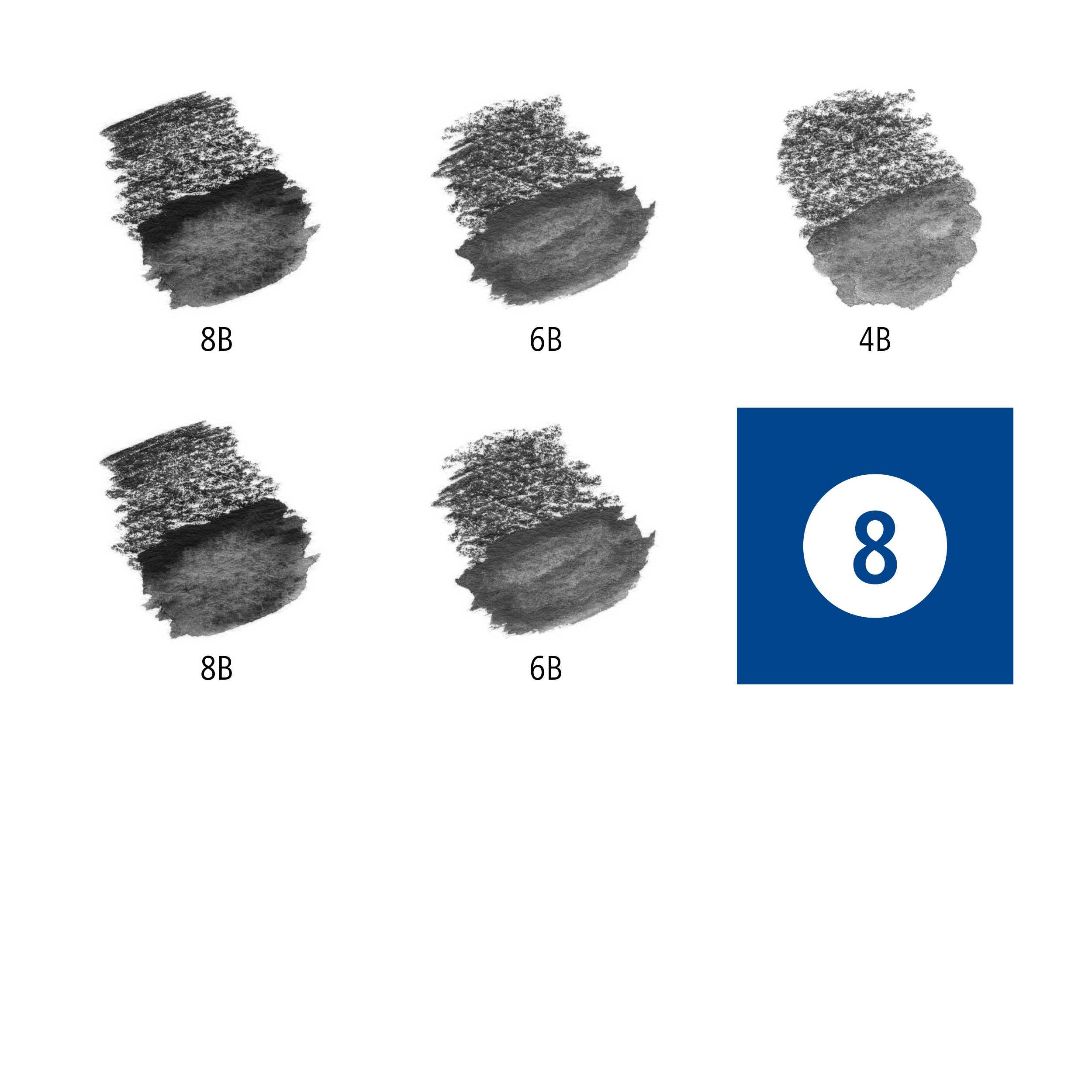 Dette sæt indeholder seks vandopløselige blyanter i forskellige hårdheder (8B, 6B, 4B) samt en pensel, så du nemt kan skabe bløde overgange, skygger og dynamiske udtryk ved blot at tilføre vand.