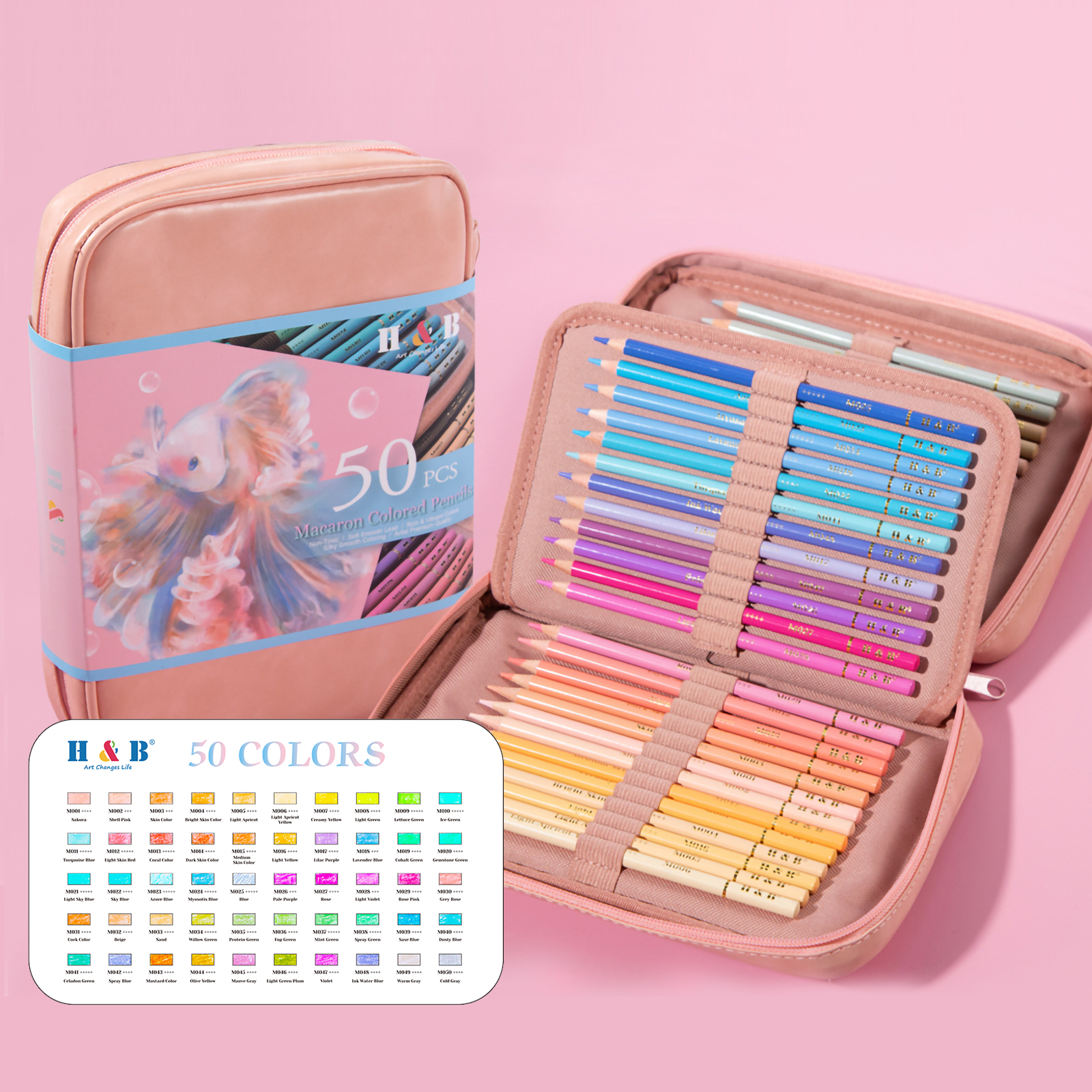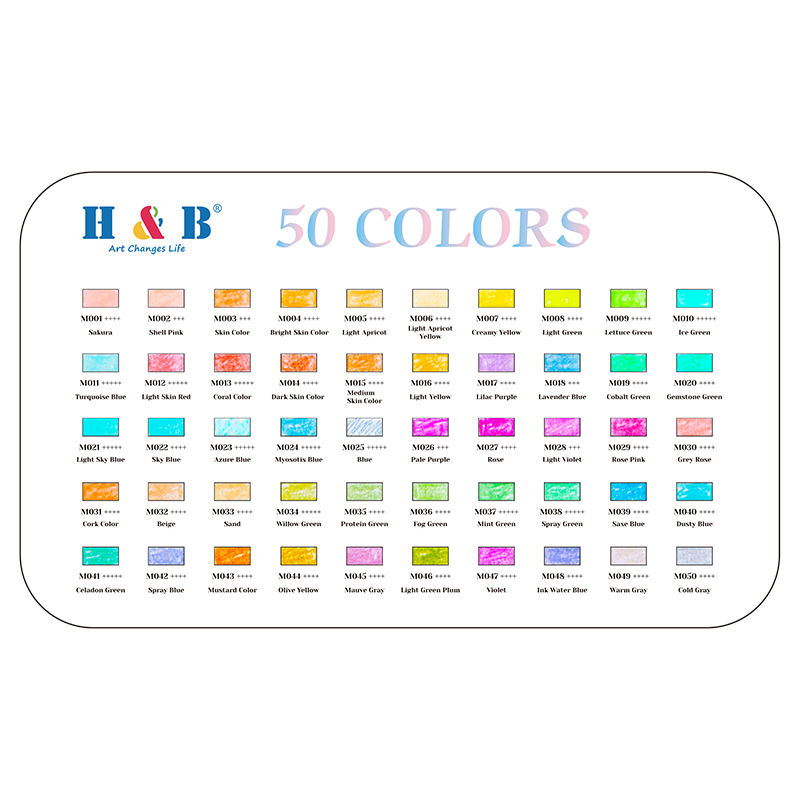 Sættet indeholder hele 50 unikke farver, som spænder fra bløde pasteller til klare, livlige nuancer. Perfekt til både begyndere, kreative hobbykunstnere og professionelle illustratører.