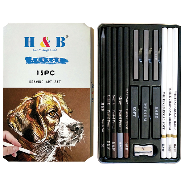 Dette H&B Drawing Art Set med 15 dele er et alsidigt sæt, der er perfekt til både begyndere og erfarne kunstnere, som ønsker at arbejde med detaljerede tegninger og forskellige skyggeteknikker.