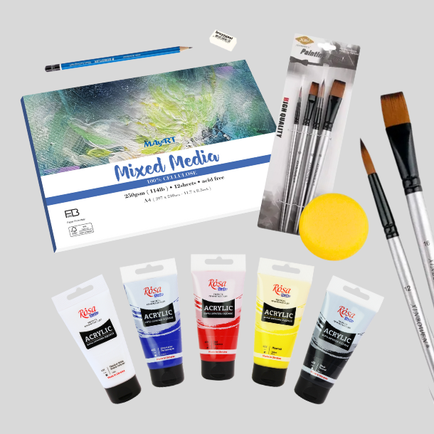 Denne startpakke til akrylmaling indeholder det basale du skal bruge, for at komme i gang.