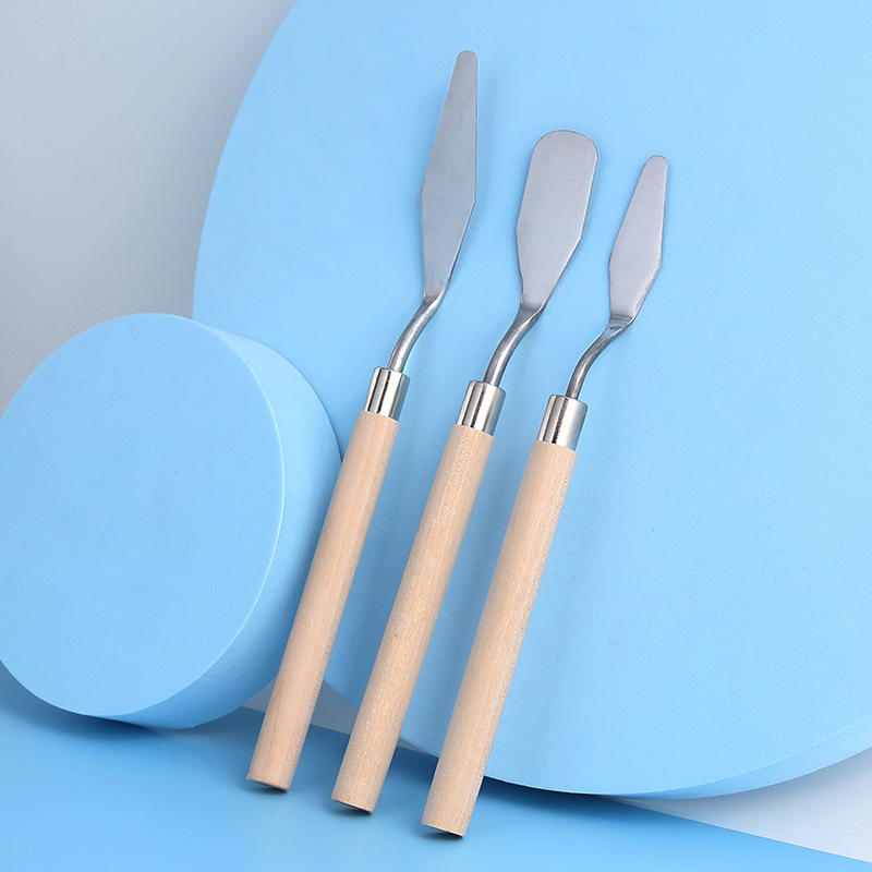 Spartelsæt med 3 forskellige størrelser i pakke. Brug spartlerne til at påføre maling på lærred eller papir, og skrab det let rundt. Denne pakke indeholder en bred spartel og 2 spidse i 2 forskellige tykkelser.
