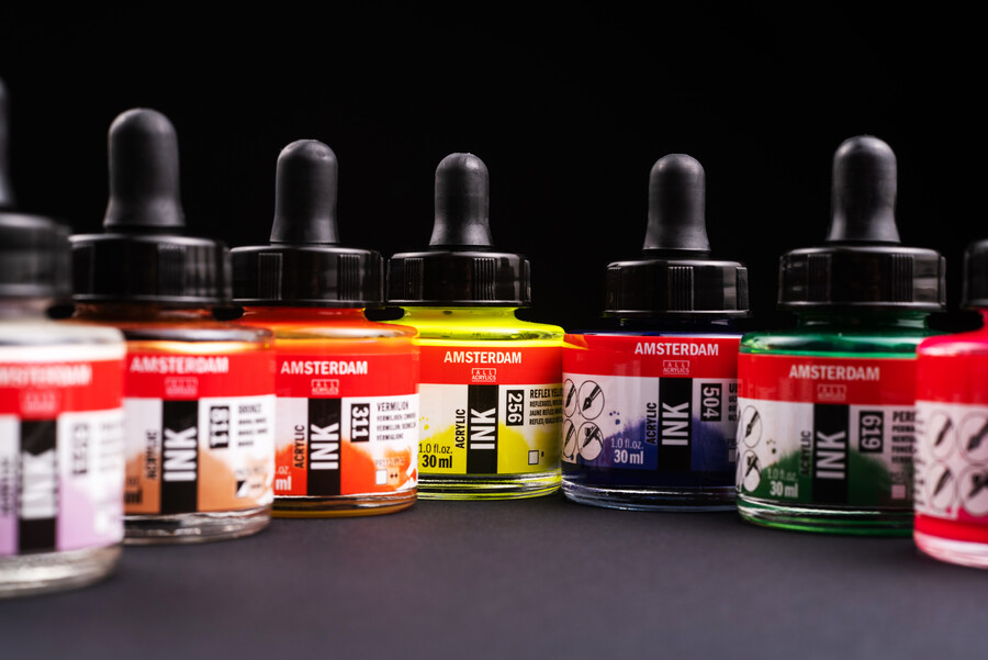 Amsterdam Akryl Ink 30 ml giver maksimal frihed og præcision – uanset om du arbejder med illustration, moderne kunst, grafiske effekter eller mixed media.