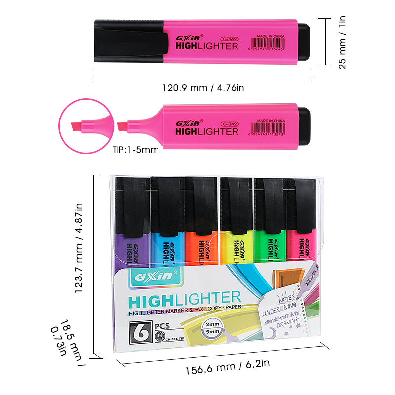 Flotte highlighters i neonfarver fra Mobee. De er udstyret med den klassiske chiseltip (skråskåret), så den er let at overstreget med. 2mm/5mm