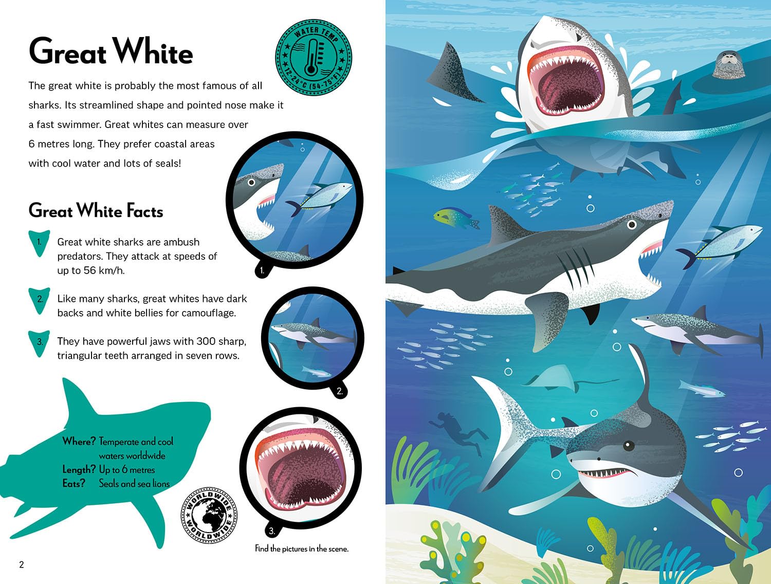 Tag på en spændende rejse under havets overflade med Fantastic Fearsome Sharks – en lærerig og actionfyldt STEM-bog, hvor børn kan udforske nogle af verdens mest fascinerende og frygtindgydende rovdyr.