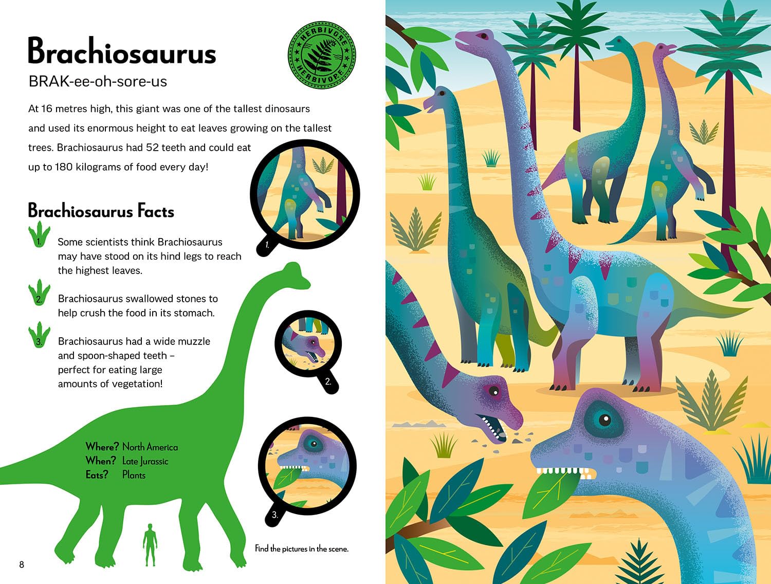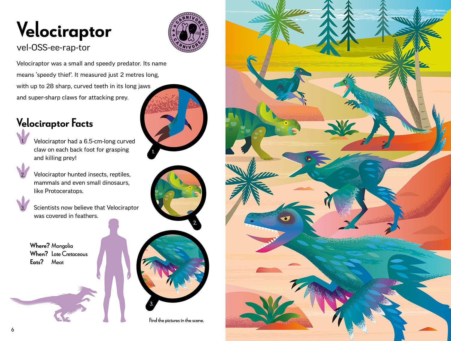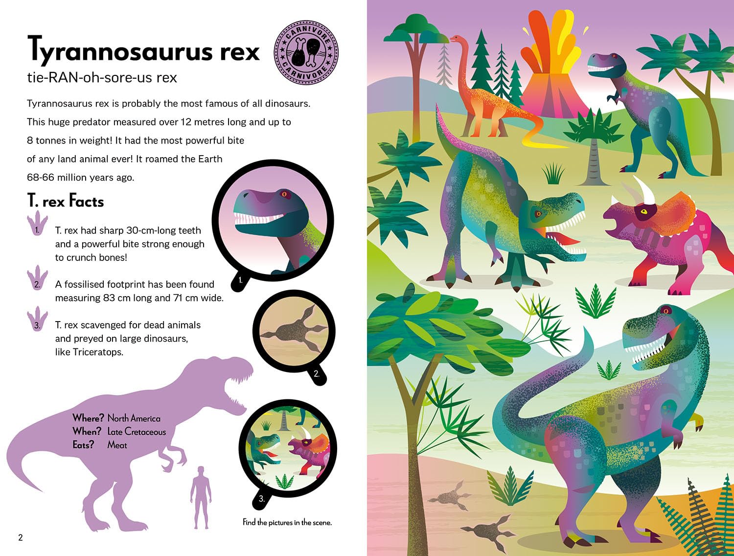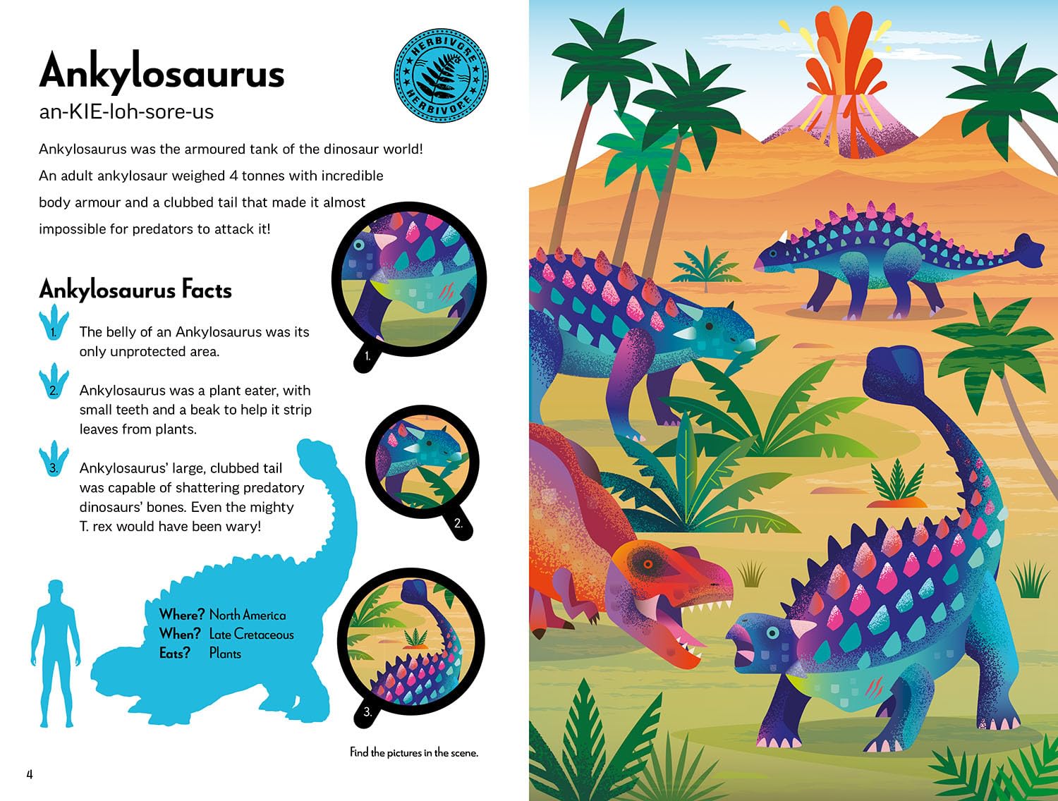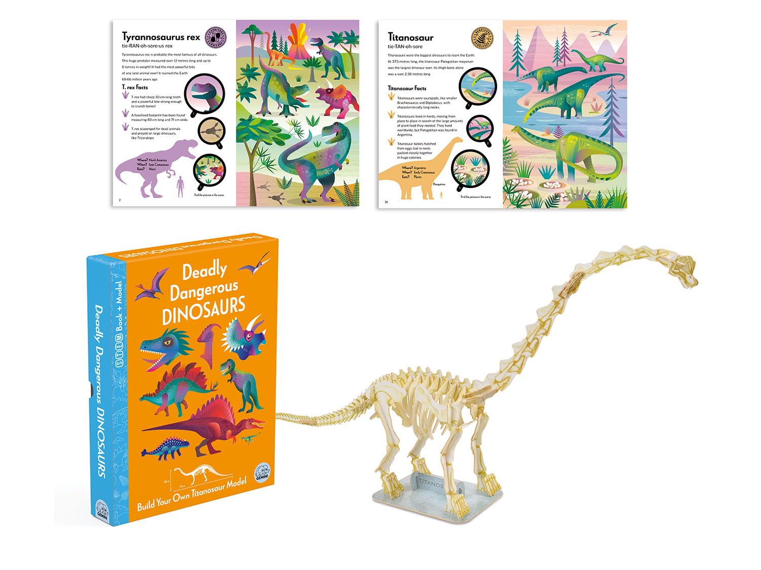 Denne bog kombinerer lærerige tekster med levende illustrationer og giver dig alt, hvad du skal vide om nogle af jordens mest frygtindgydende dinosaurer. Lær om deres levevis, størrelser, jagtmetoder og særlige evner – fra den pansrede ankylosaurus til den berygtede Tyrannosaurus rex.