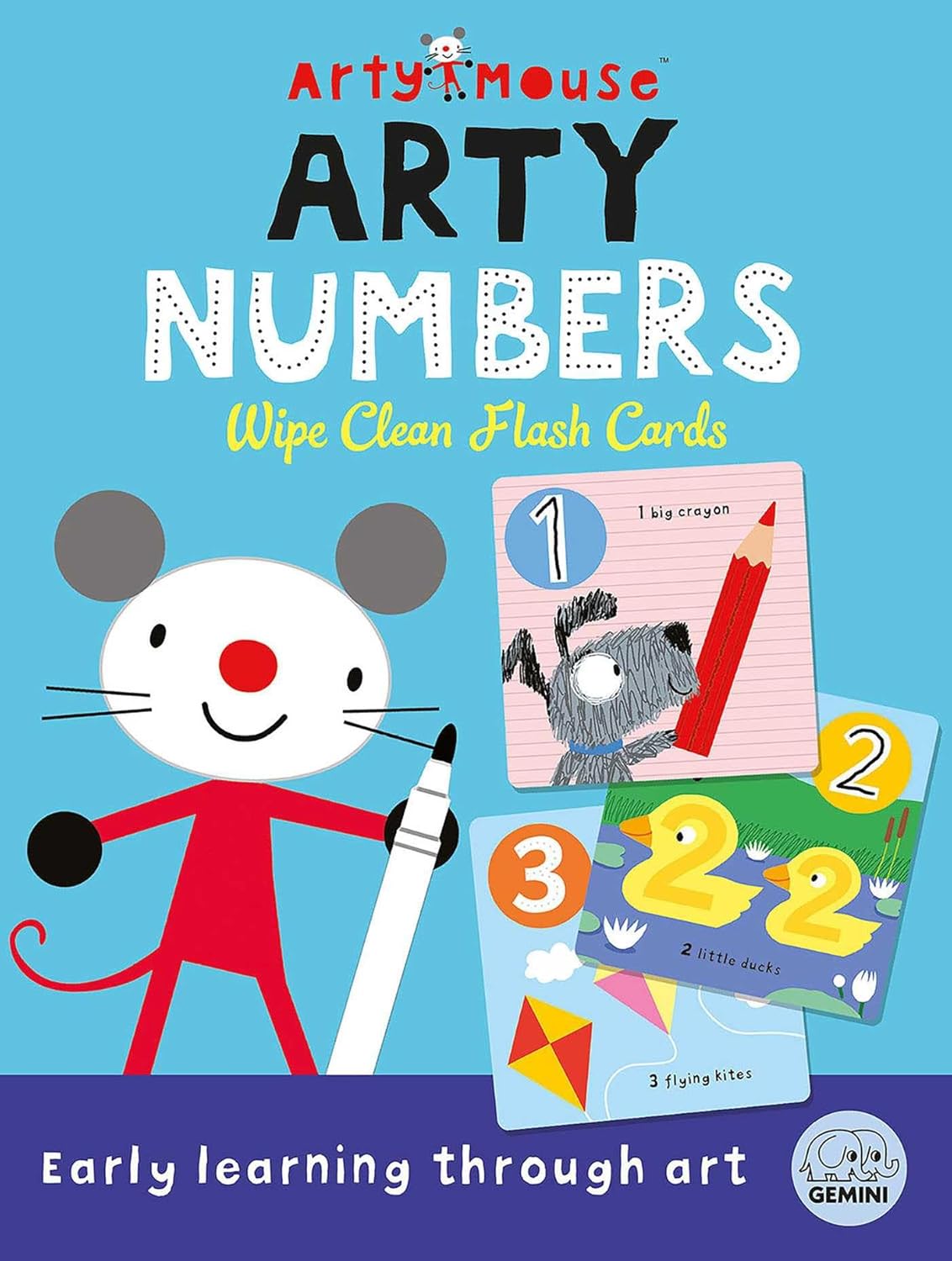 Gør læring sjov og kreativ med Arty Mouse: Arty Numbers – Wipe Clean Flash Cards, et fantastisk værktøj til børn, der skal lære tallene gennem leg og kunst.