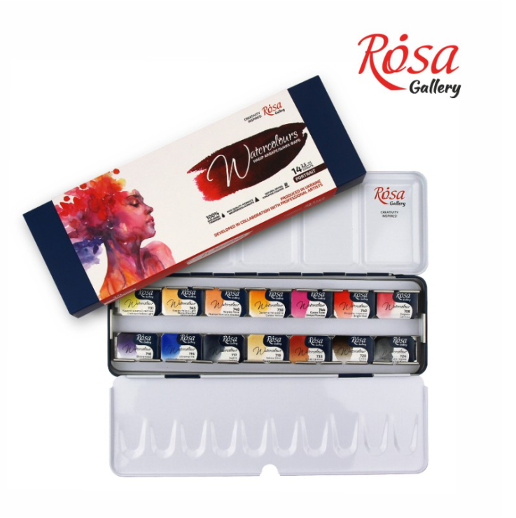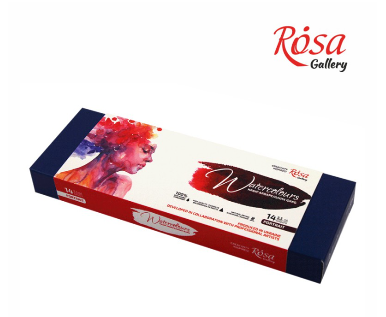 Sæt med professionelle portræt ROSA Gallery Artists' Watercolors består af farver, der giver dig mulighed for at få et bredt farveudvalg til at male et menneske i skønne nuancer. Størstedelen af farverne er enkeltpigment gør det muligt for at opnå adskillige fantastiske rene nuancer, når farverne blandes.