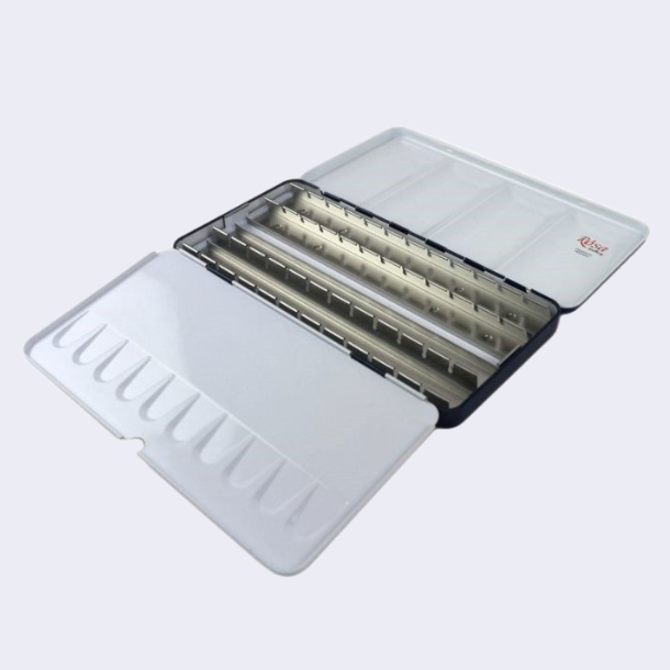 ROSA Gallery metaletui til 35-70 akvarelbrikker. Etuiet passer både til helpans fra Rosa og half pans fra Van Gogh, Rembrant og Daler Rowney.