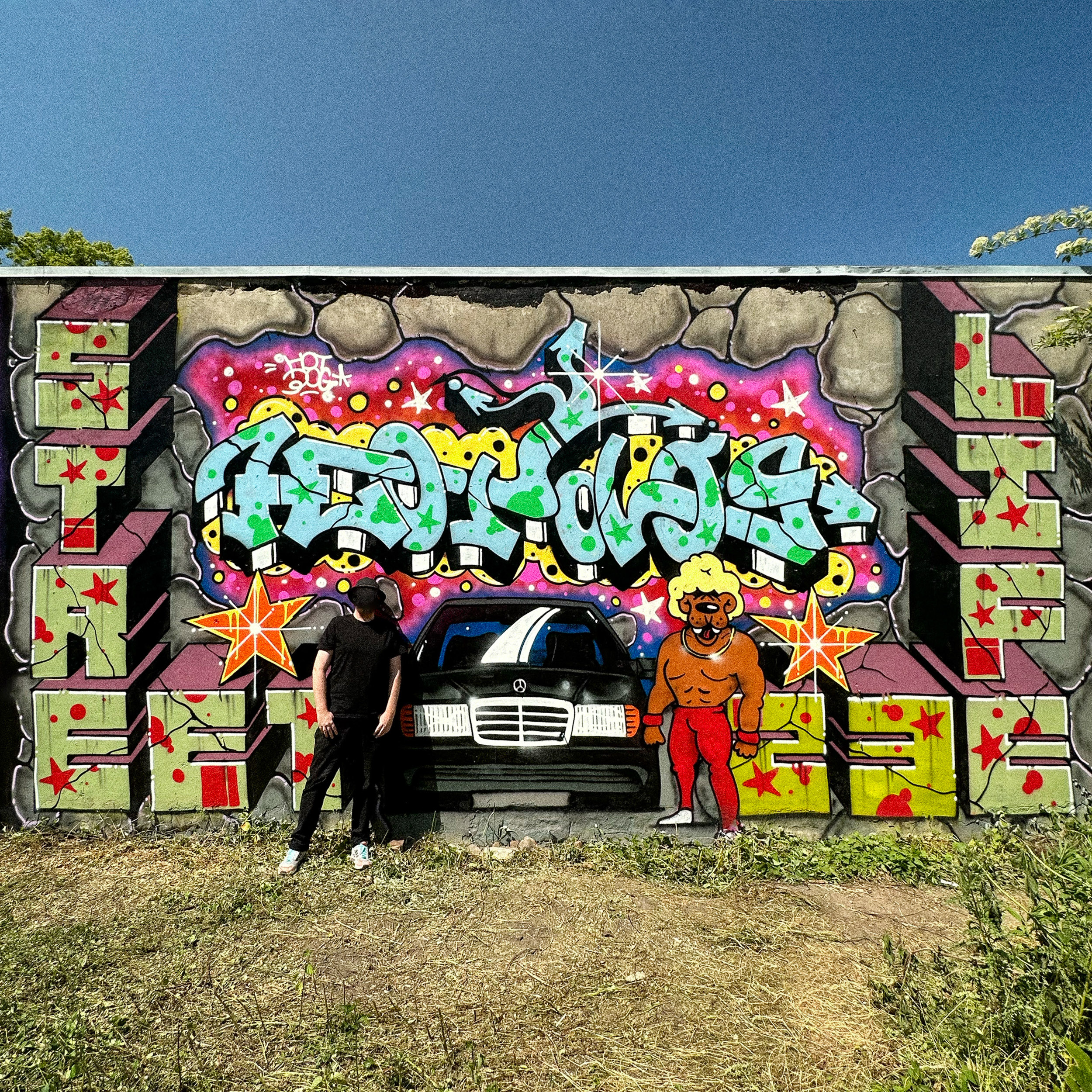 Hotdog, også kendt som Superspray eller “the double-hand of doom”, er berømt for sine karakteristiske figurer med tre øjne og sine farverige vægmalerier.