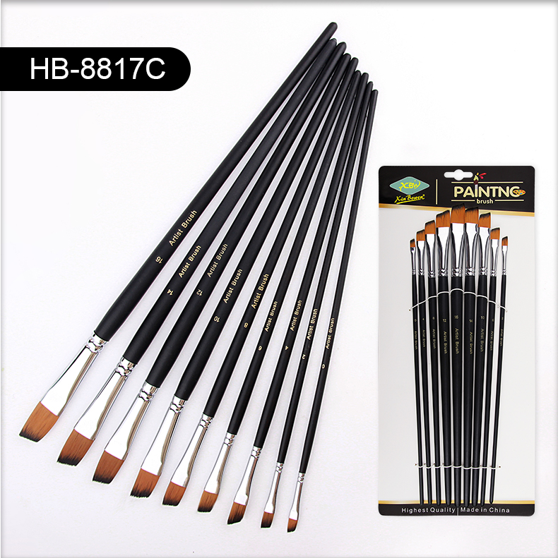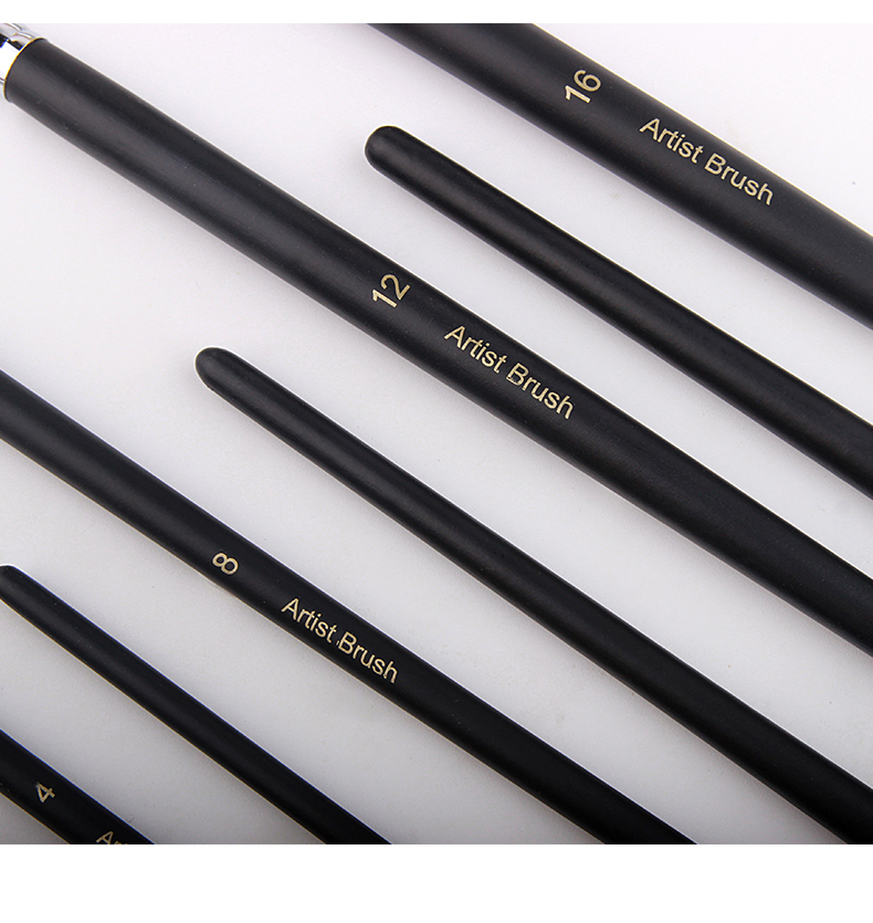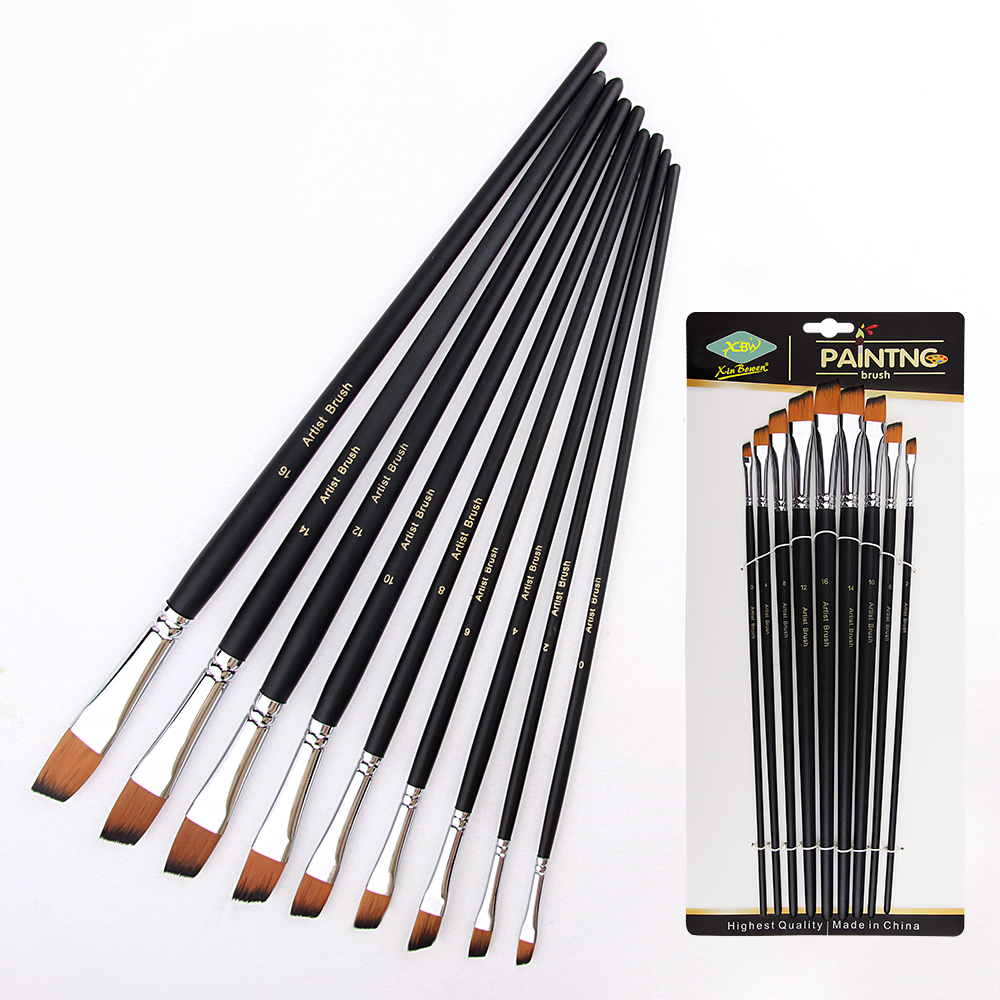 Artist Brush Langskaftet Penselsæt 9-Pak - Sort, Skråskåret