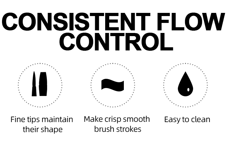 Penslerne har et enkelt sort skaft med gyldenbrune penselshår