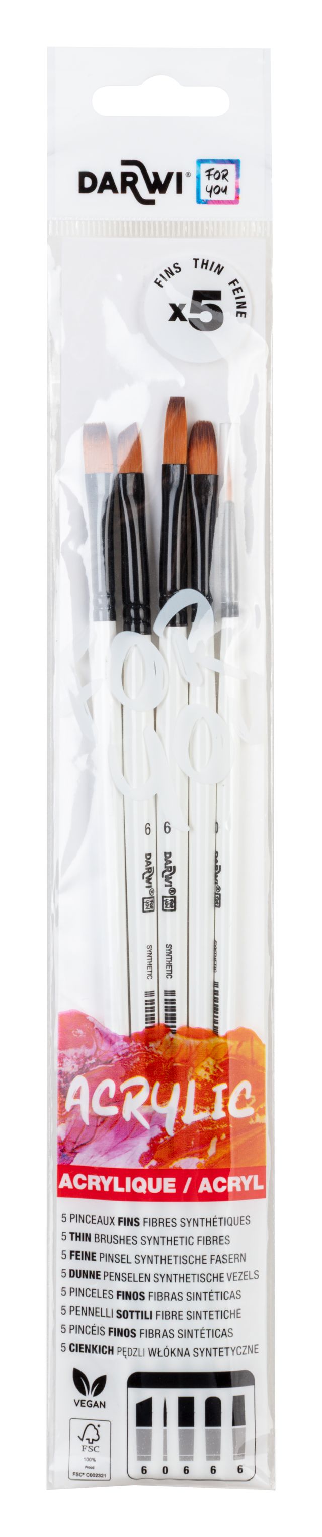 Dette penselsæt består af nøje udvalgte pensler med slidstærke, syntetiske hår, der giver god kontrol og præcision. Penslerne kan bruges af både begyndere og øvede.