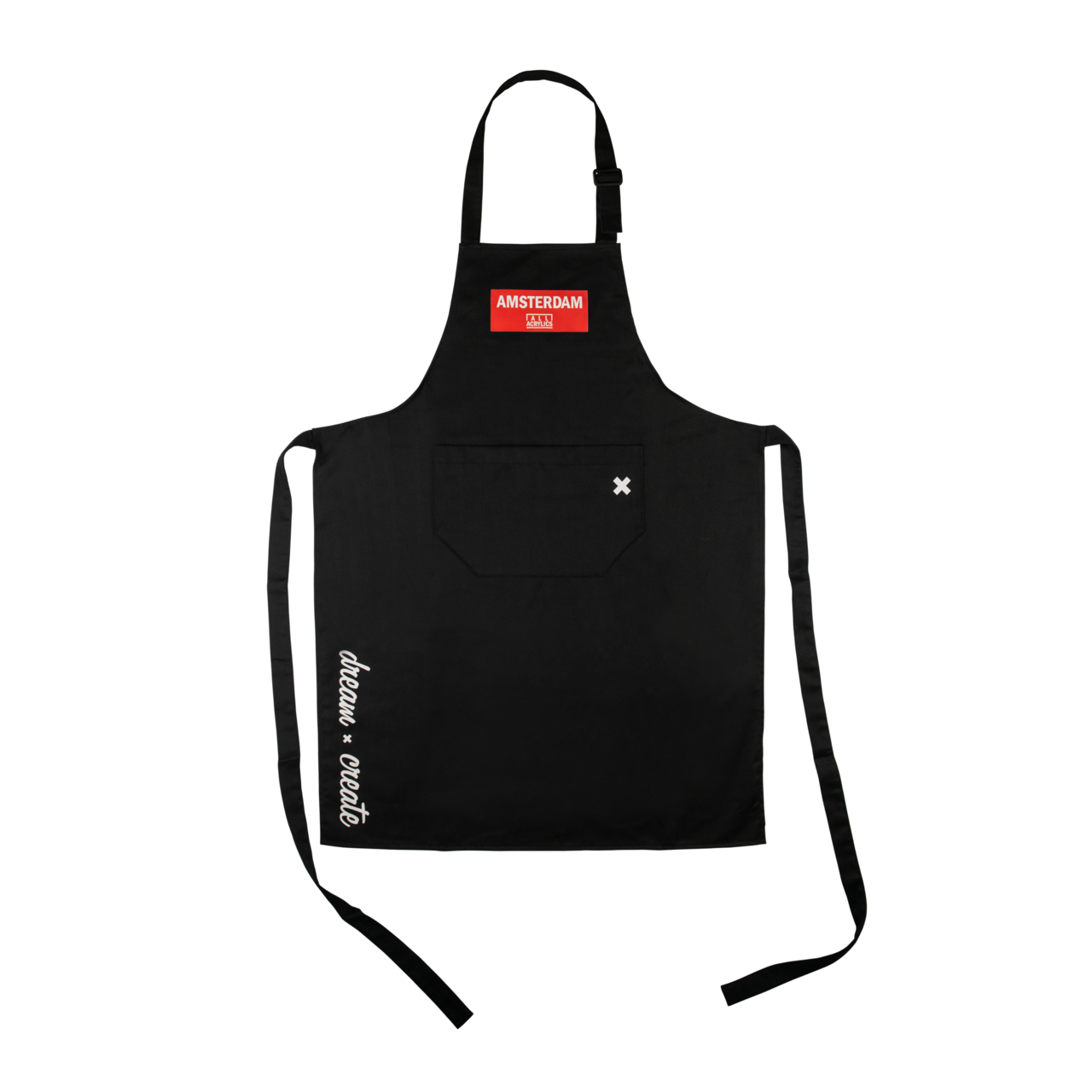 Dette elegante malerforklæde er designet specielt til kunstnere, der ønsker funktionalitet og stil. Forklædet er sort med Amsterdams logo på forsiden.