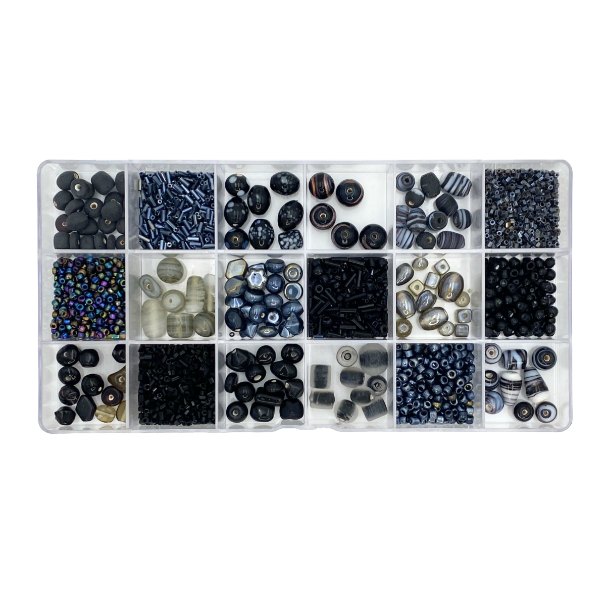 Dette sæt med håndlavede glasperler i onyxsort er ideelt til dig, der ønsker at tilføre dine kreative projekter en luksuriøs og elegant farve.