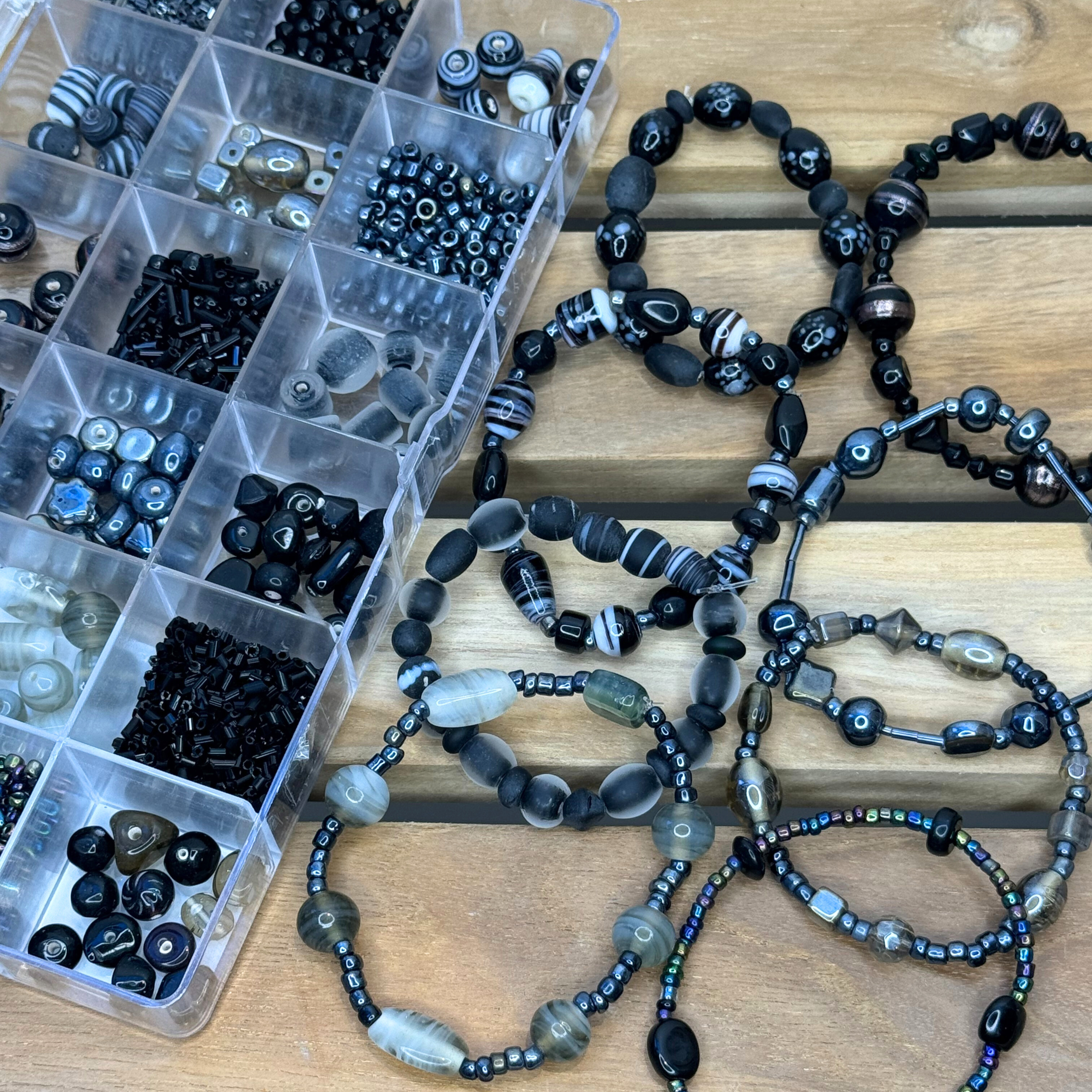 Onyxsort er en klassisk farve, der nemt kan kombineres med andre materialer som metal, sølv, guld eller andre farvede perler, hvilket gør det muligt at skabe både minimalistiske og mere detaljerede designs.