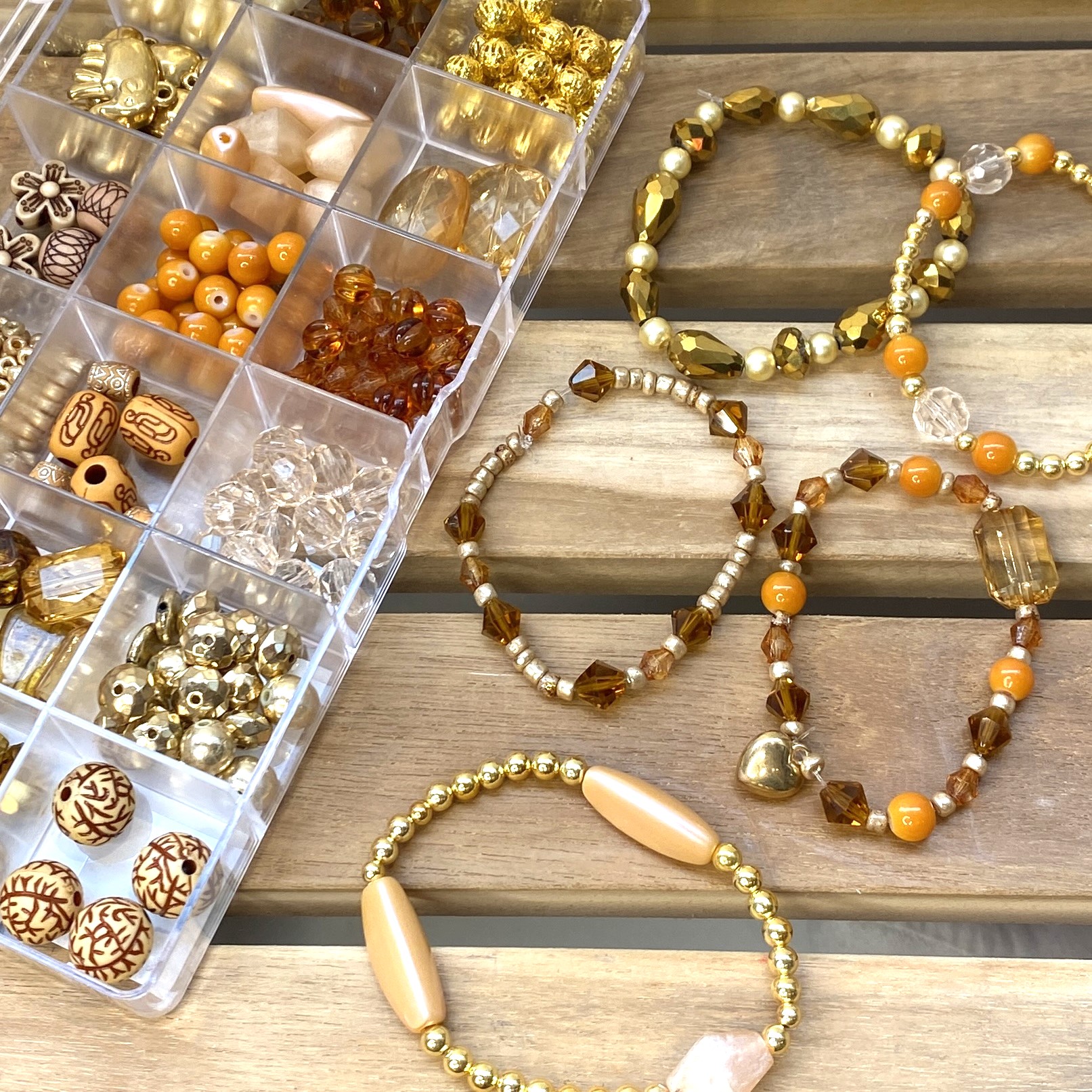 Mange af perlerne i sættet er omhyggeligt håndlavet af dygtige håndværkere, hvilket sikrer små unikke variationer i farve og form, som giver dine kreationer en autentisk og kunstnerisk fornemmelse.