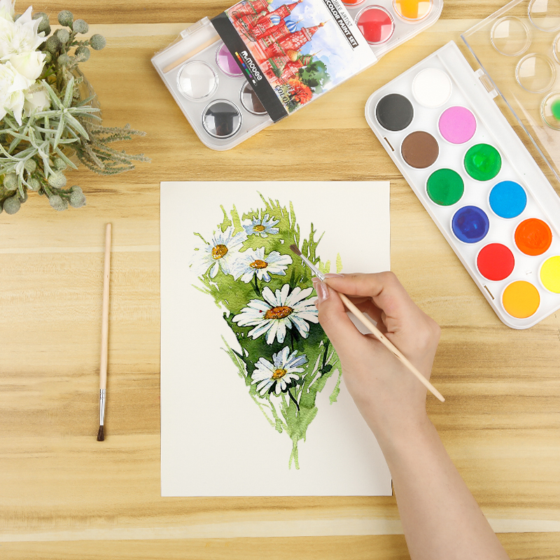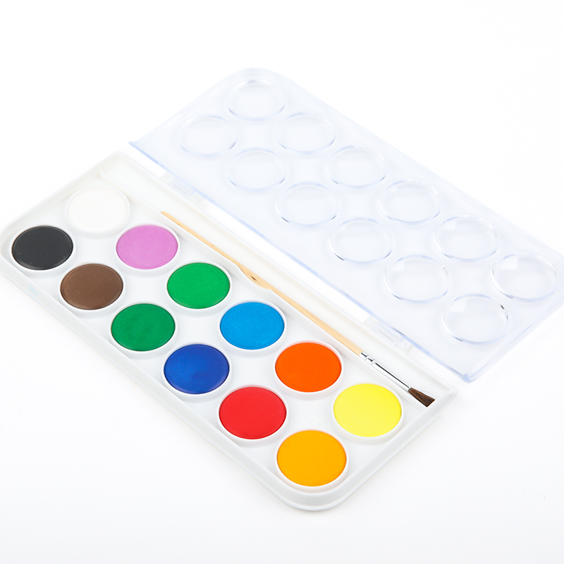 Sættet indeholder 12 flotte akvarelfarver af fin kvalitet, som giver et smukt resultat på papir og gør det nemt at eksperimentere med farve og vandteknikker.