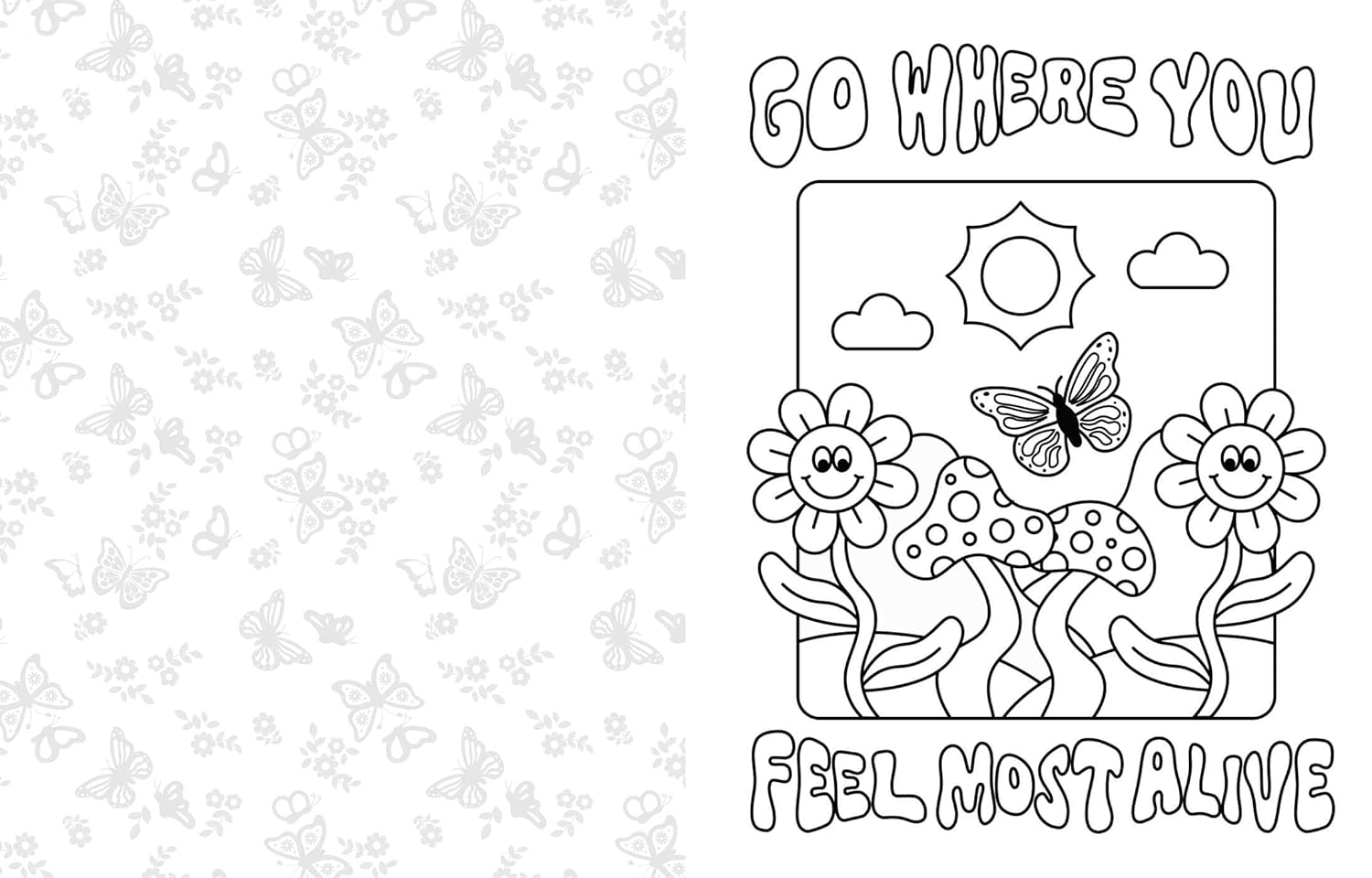 Lad kreativiteten flyde, mens du farvelægger opløftende budskaber omgivet af blomster, planter, svampe og andre fantasifulde motiver, der giver ro og ny energi.