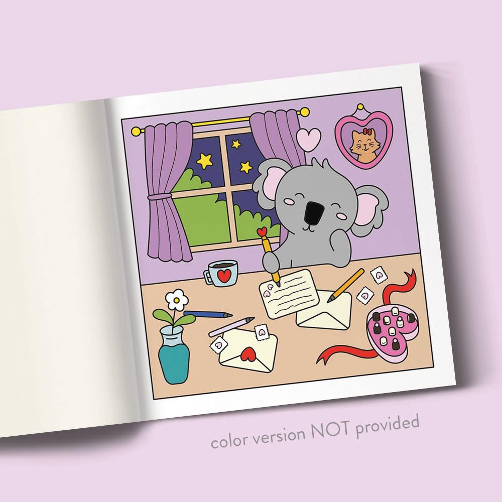 Malebogen My Little Cosy Life: Lovelies inviterer ind i en hyggelig og fantasifuld verden fyldt med søde karakterer og sjove scener.
