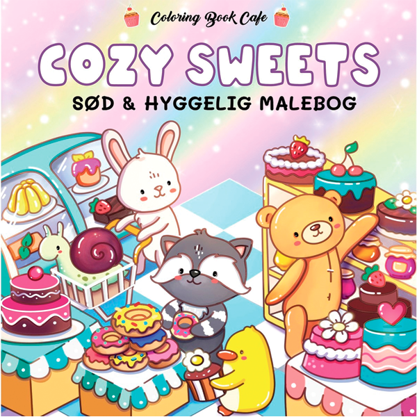 Cozy Sweets er en herlig malebog fyldt med søde motiver af kager, desserter og nuttede figurer i et farverigt univers.