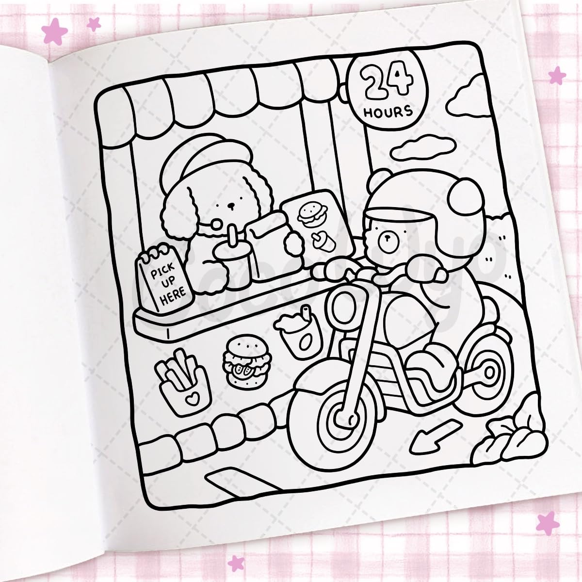 Bogen rummer en række unikke sider med charmerende figurer, rolige udendørsscener og hyggelige hverdagssituationer, som er lige til at farvelægge efter humør.