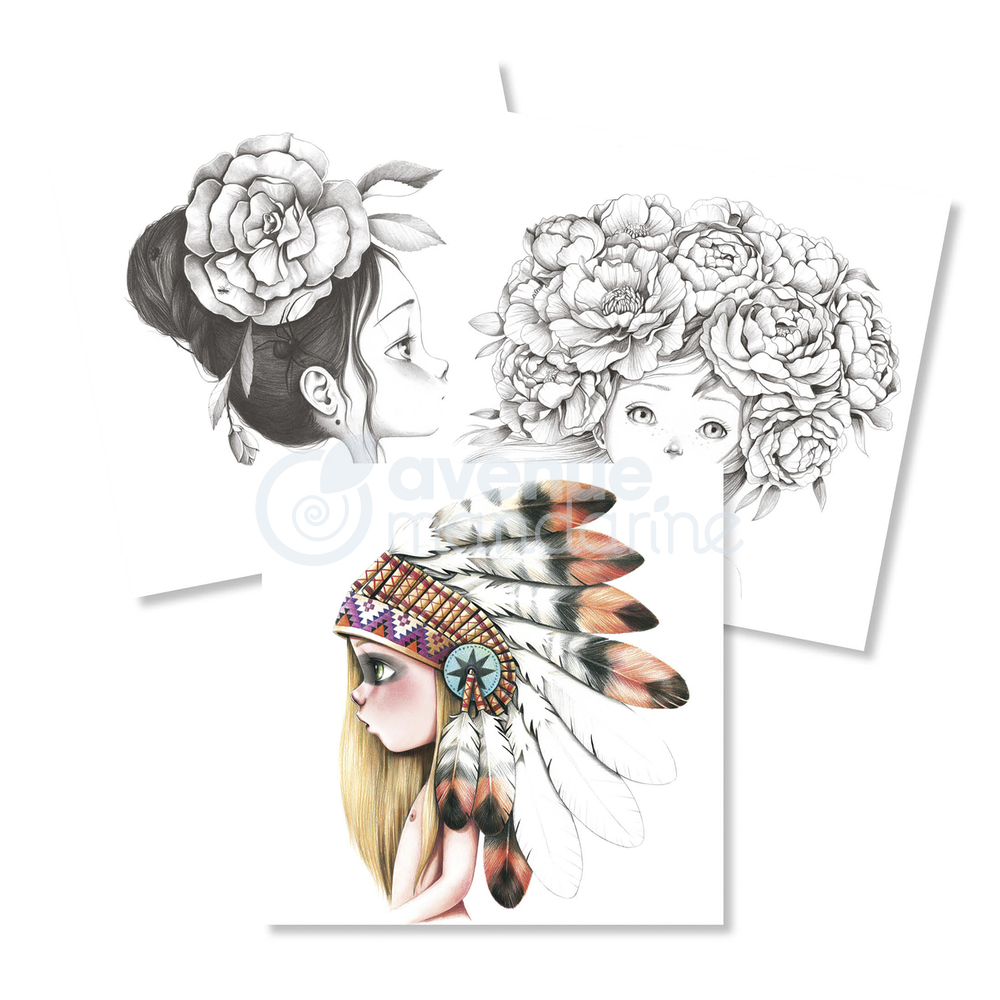 Med en malebog fra Avenue Mandarine kan du farvelægge og personliggøre dine kreationer. Disse sider kan nemt tages ud af malebogen så andre kan farvelægge et af de andre motiver samme tid. Eller du kan tage malebogen med på tur, og forsætte dine kreationer hen af vejen uden at billederne krøller.