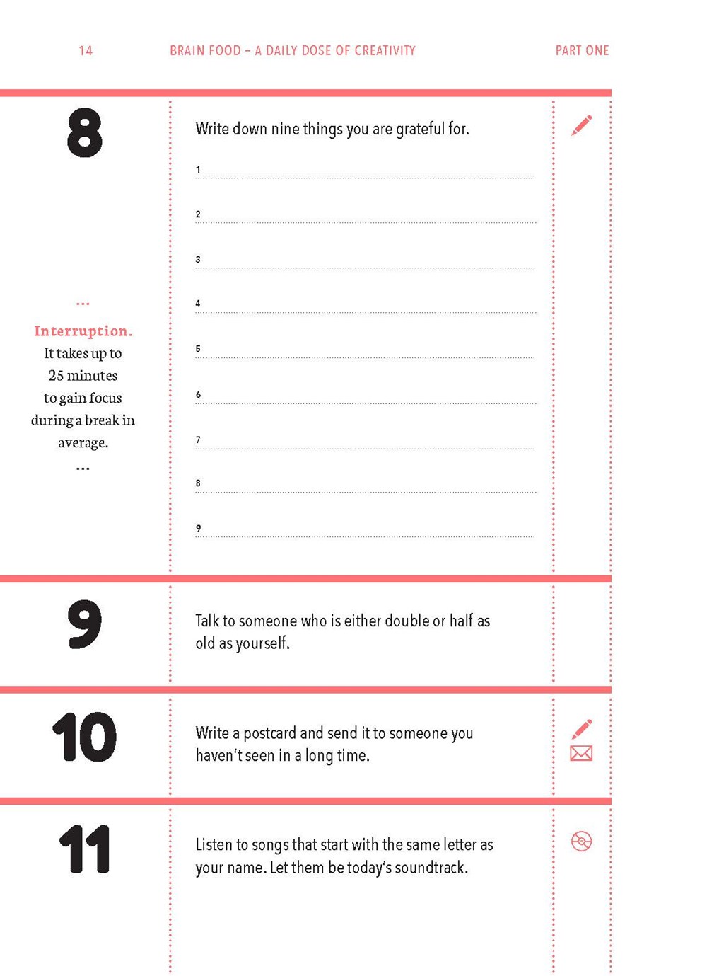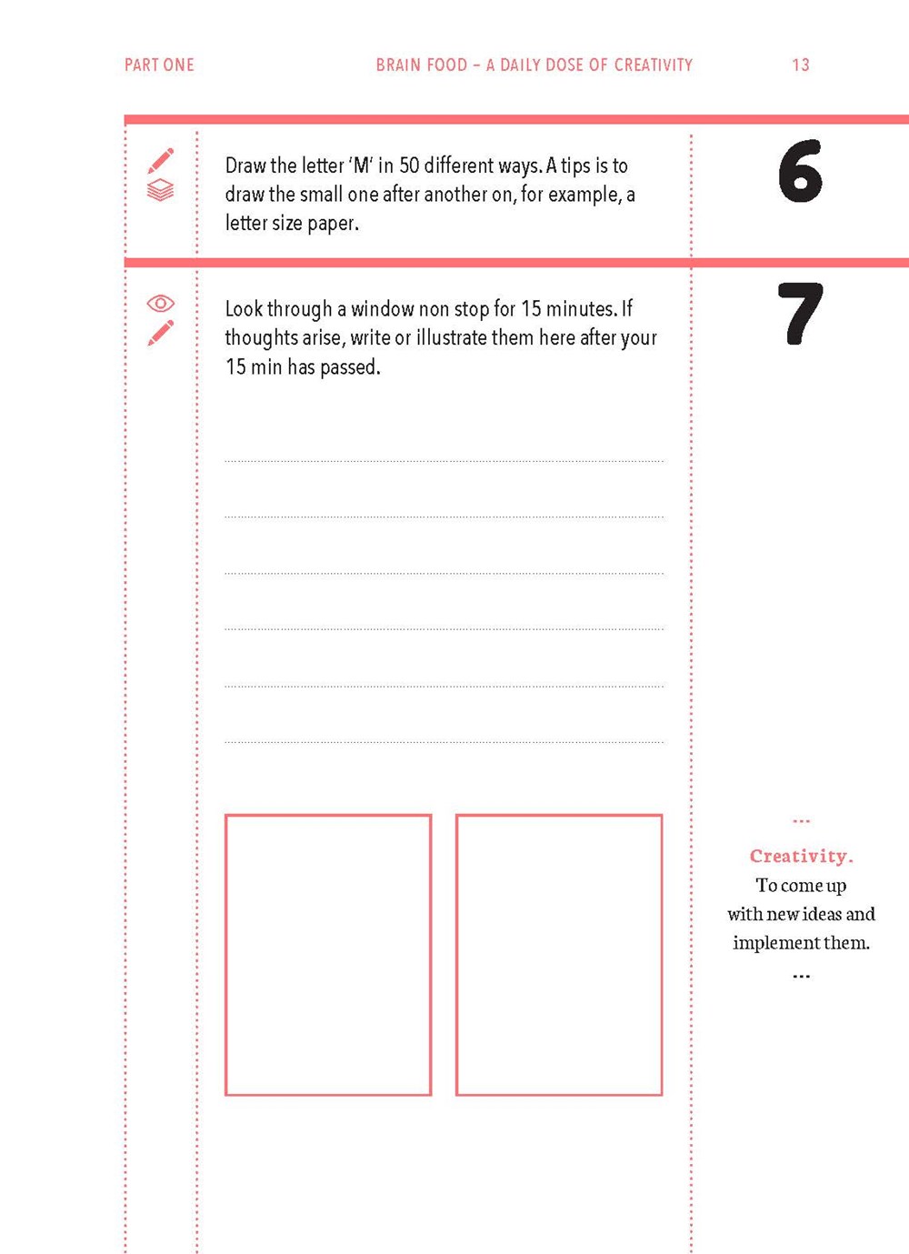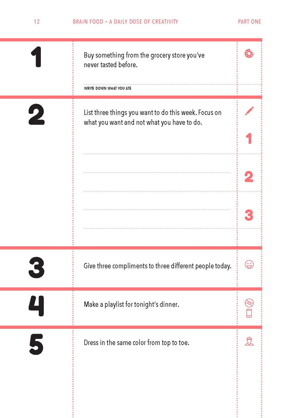 De 365 udfordringer i denne bog er skabt for at hjælpe dig med at finde dine mange kreative sider – uanset om du fejlagtigt tror, du ikke er kreativ, eller du allerede ser dig selv som verdensmester i kreativitet (selvom det ikke er en rigtig titel) og har brug for en ny udfordring. Tag én opgave om dagen. Eller lav flere på én gang. Eller lad tilfældighederne bestemme.