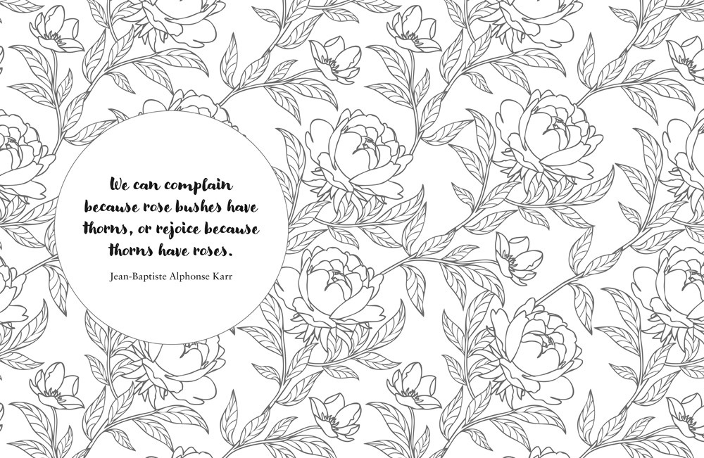 Fyld 40 sider detaljerede illustrationer med farver, fordyb dig i opløftende citater og lad dig inspirere af små, enkle øvelser, der hjælper dig med at opdage alt det, du allerede har at være taknemmelig for.