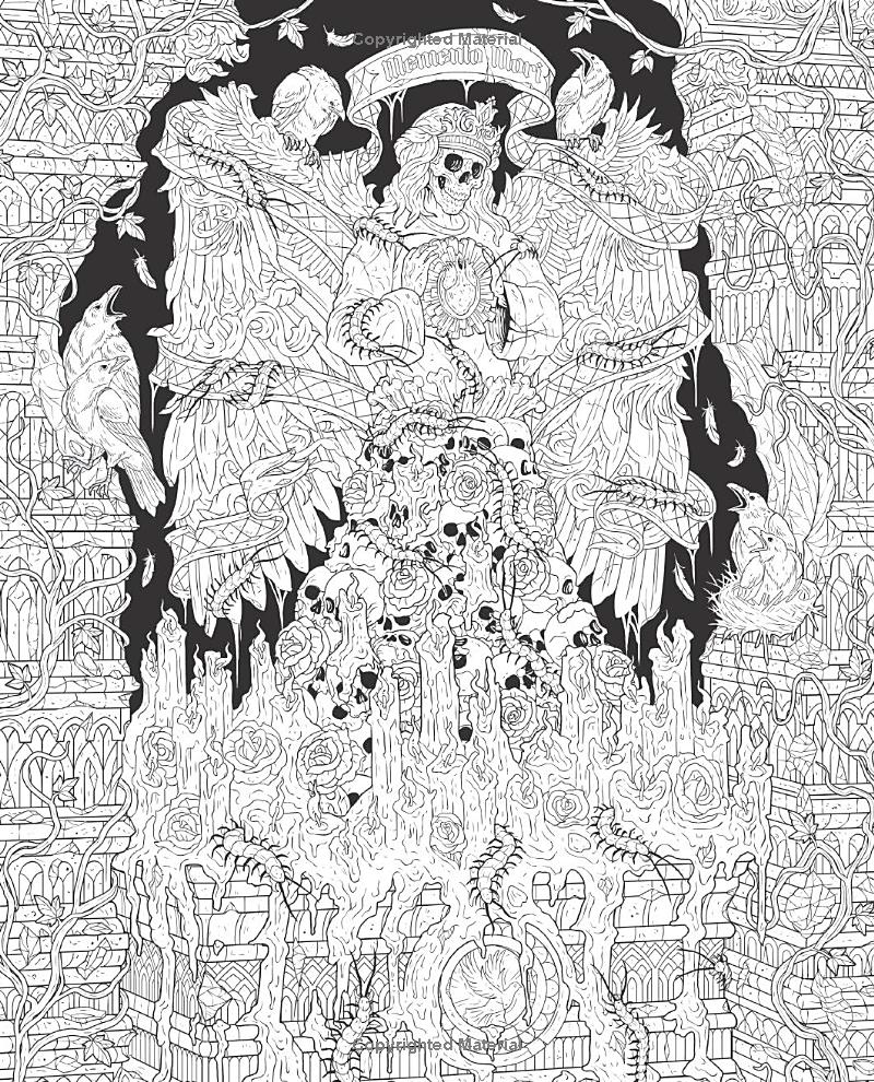 Bogen samler en række unikke illustrationer i en gotisk og surrealistisk stil, hvor kranier, ornamenter og fantasifulde elementer smelter sammen i kunstneriske kompositioner.