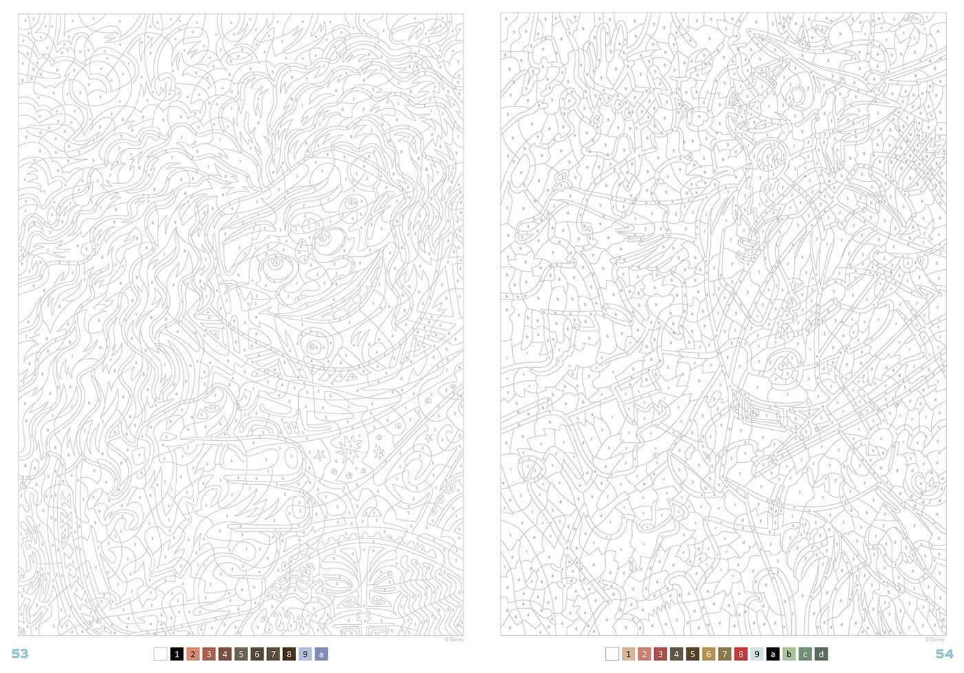 Følg farvekoderne og se scenerne tone frem, mens du farvelægger dine yndlingshelte og prinser fra det magiske Disney-univers.