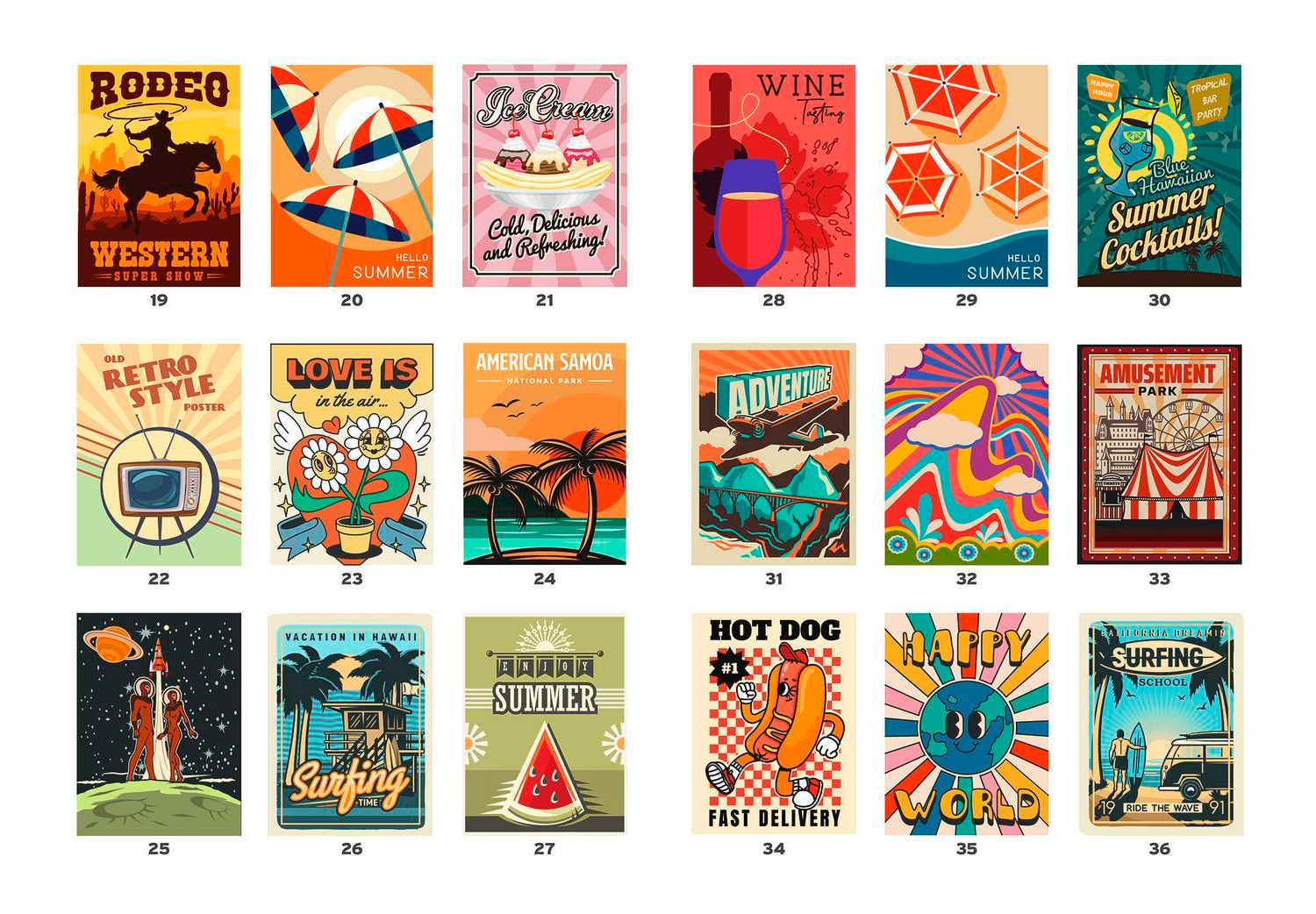 Mal flotte vintage plakater af blandt andet biler, cocktails og mere i denne paint-by-numbers malebog.