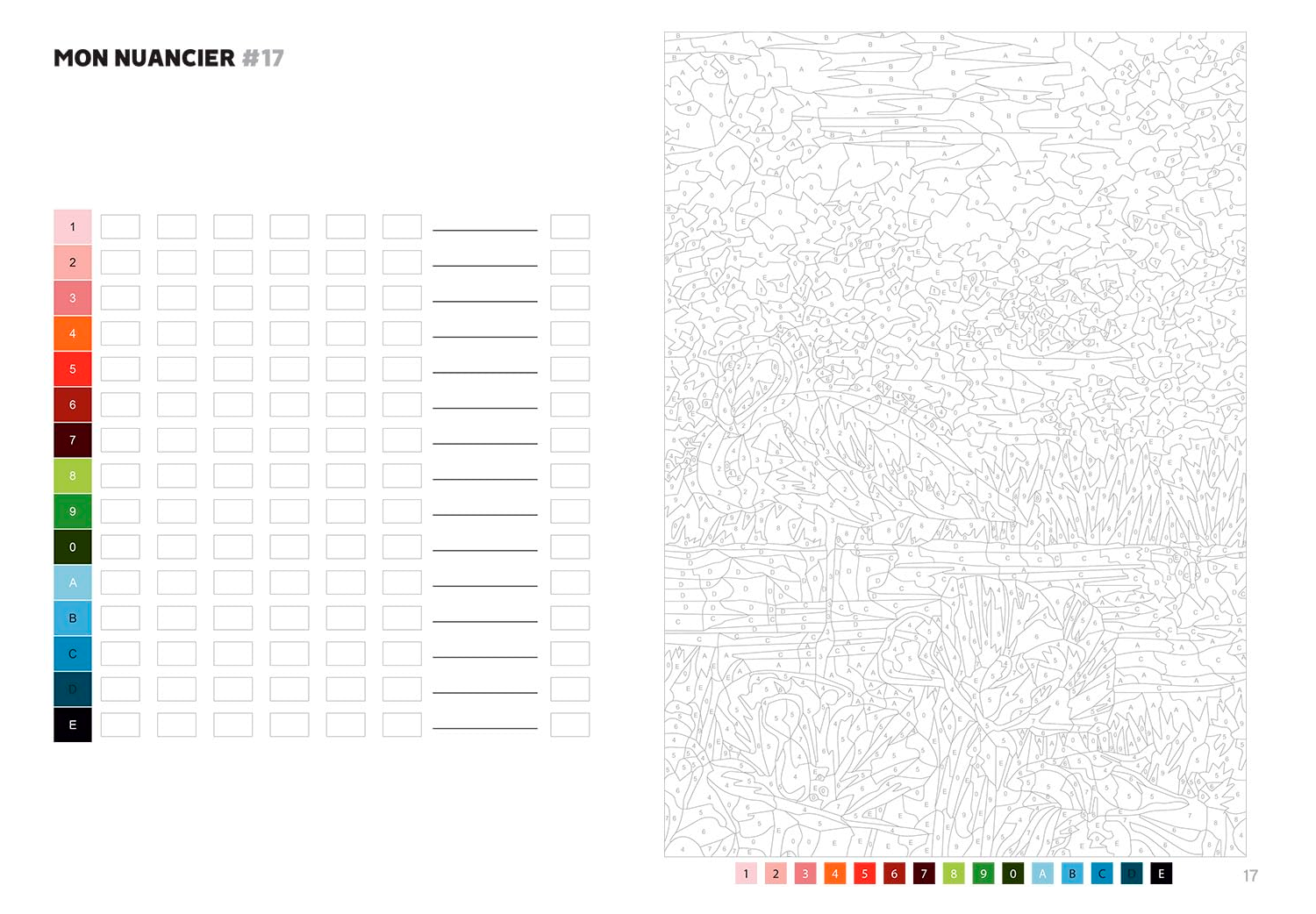 Ved hjælp af farvekoderne kan du påføre de rette nuancer i de angivne felter og langsomt få billedet til at træde frem. Farvelæg tallene og opdag motivet bag!
