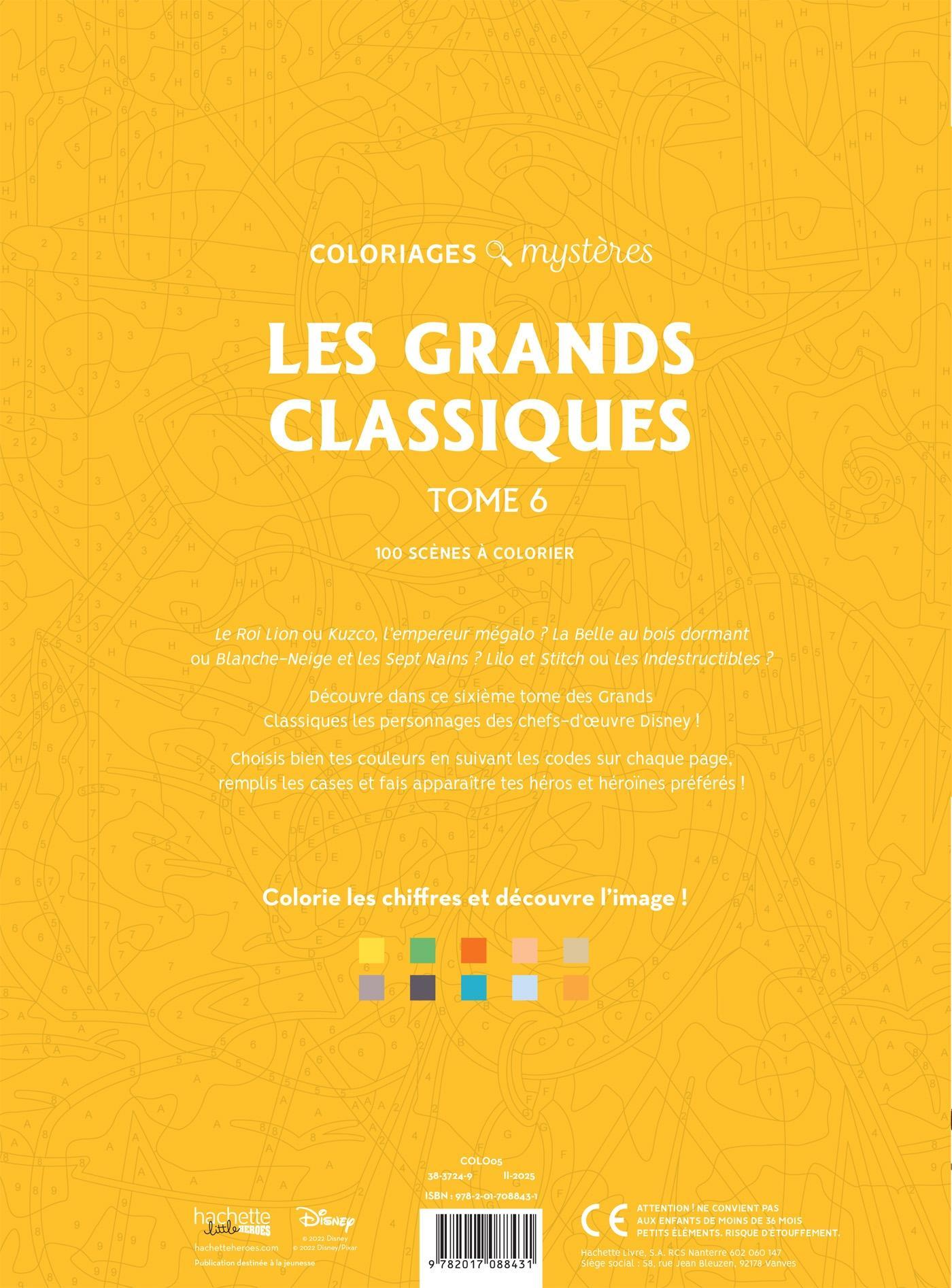 Oplev i dette sjette bind af Store Klassikere figurerne fra Disneys mesterværker: Brug farvekoderne, læg hver nuance i det rigtige felt, og afslør dine yndlingsscener.