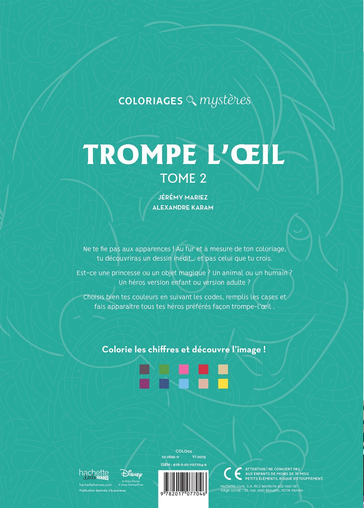 Vælg dine farver omhyggeligt ved at følge koderne, udfyld felterne, og lad alle dine yndlingshelte træde frem i trompe-l’œil-stil.