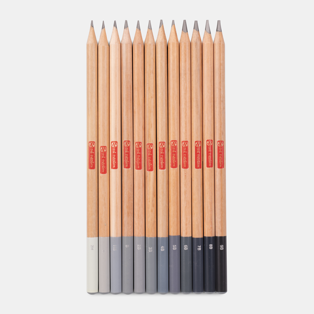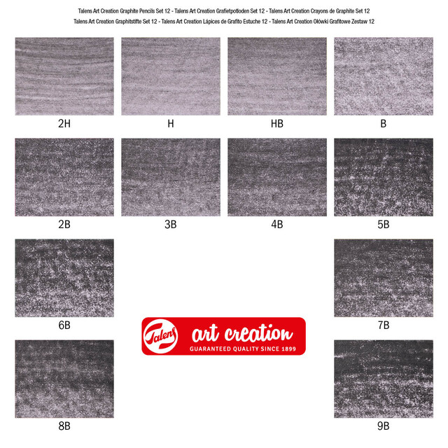 Indhold: 12 blyanter (2H - H - HB - B - 2B - 3B - 4B - 5B - 6B - 7B - 8B - 9B).