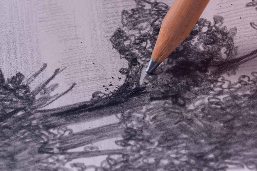 Jo blødere blyanten er, jo mørkere bliver skyggen.