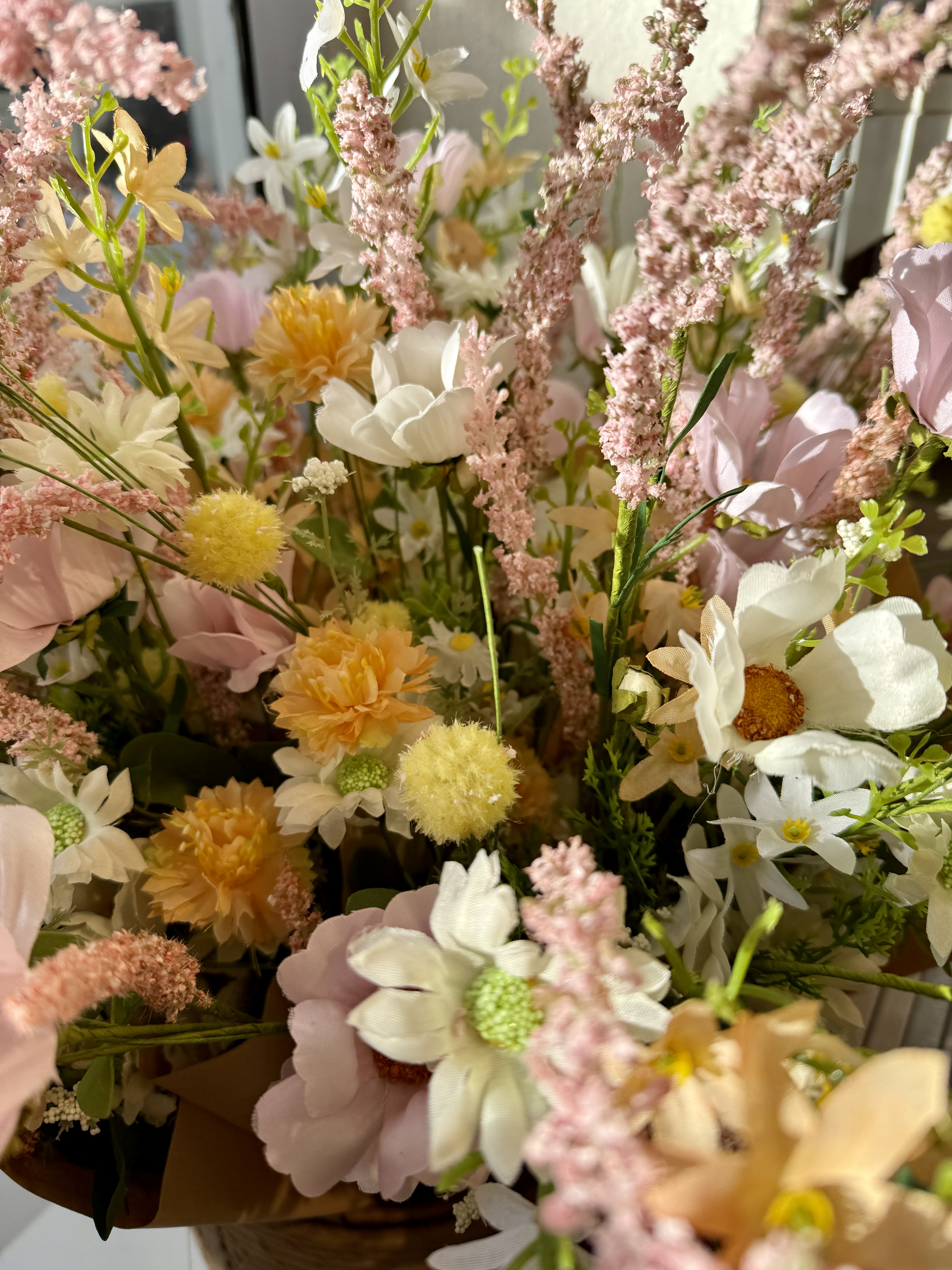 Skab en let og indbydende stemning med denne kunstige buket i et luftigt markbuket-look.