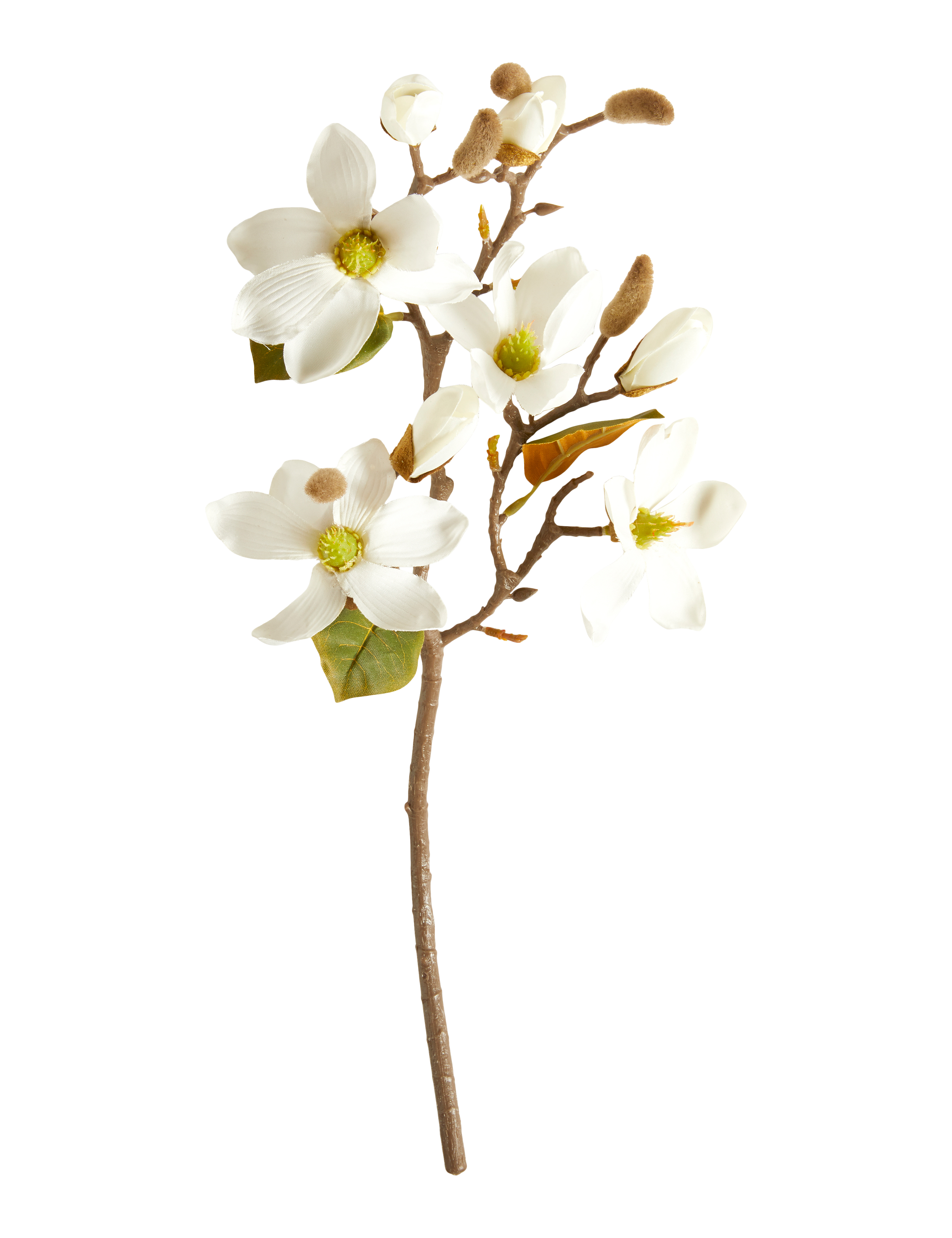 Tilfør hjemmet et roligt og eksklusivt udtryk med denne smukke, kunstige magnoliagren. De store, hvide blomster og fine knopper er inspireret af magnoliens karakteristiske form og skaber et elegant og naturtro helhedsindtryk.