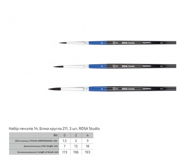Dette sæt indeholder runde pensler i størrelserne 0, 2 & 4.